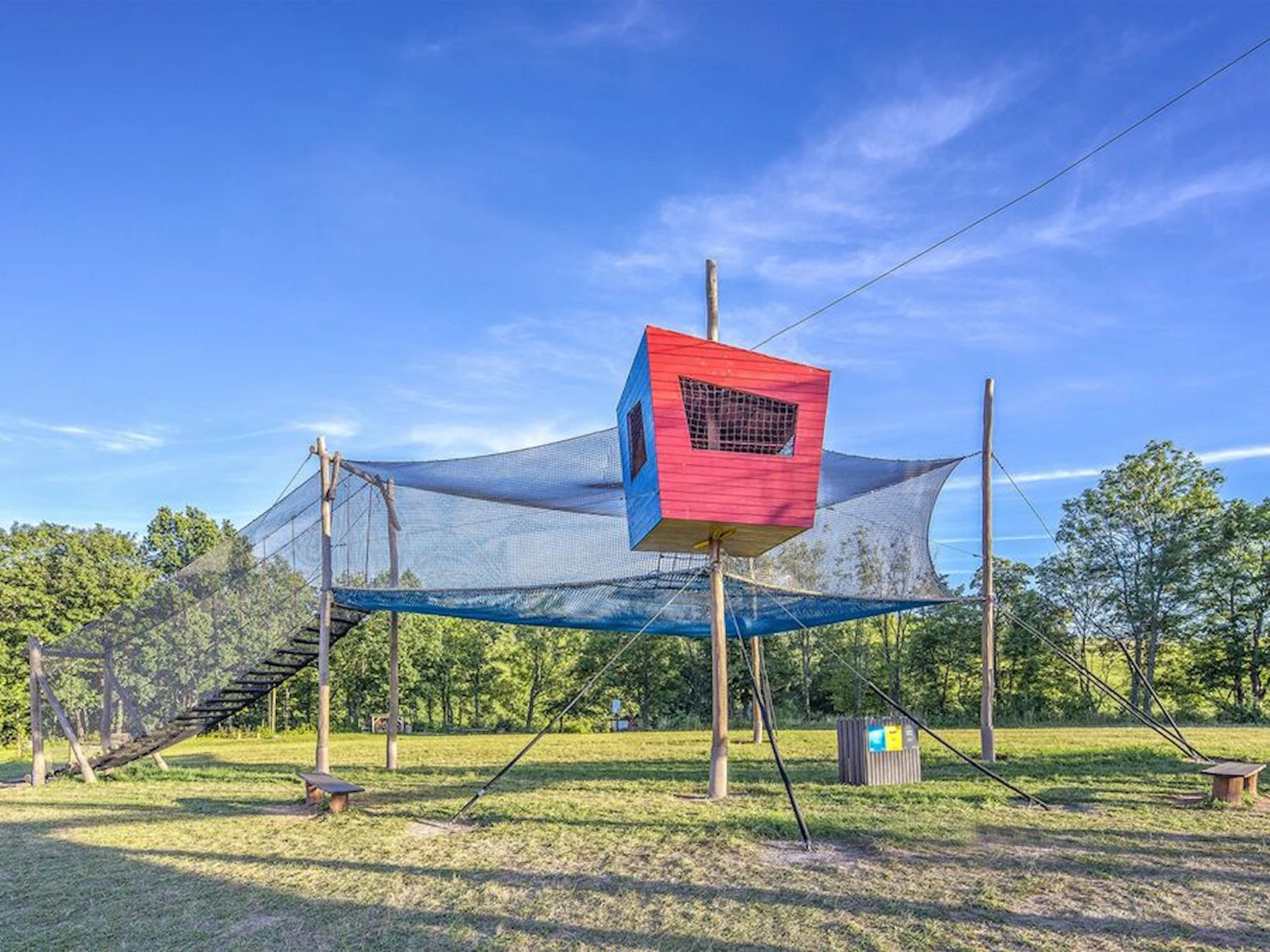 Selve legefladen udgør cirka 90 m² og er placeret omkring fire meter over terræn. Her kan man bevæge sig frit, opholde sig, hoppe eller finde ro med udsyn til omgivelserne. Netfladen kan suppleres med gummibolde i varierende størrelser, hvilket tilfører taktil variation og en mere dynamisk bevægelsesoplevelse.