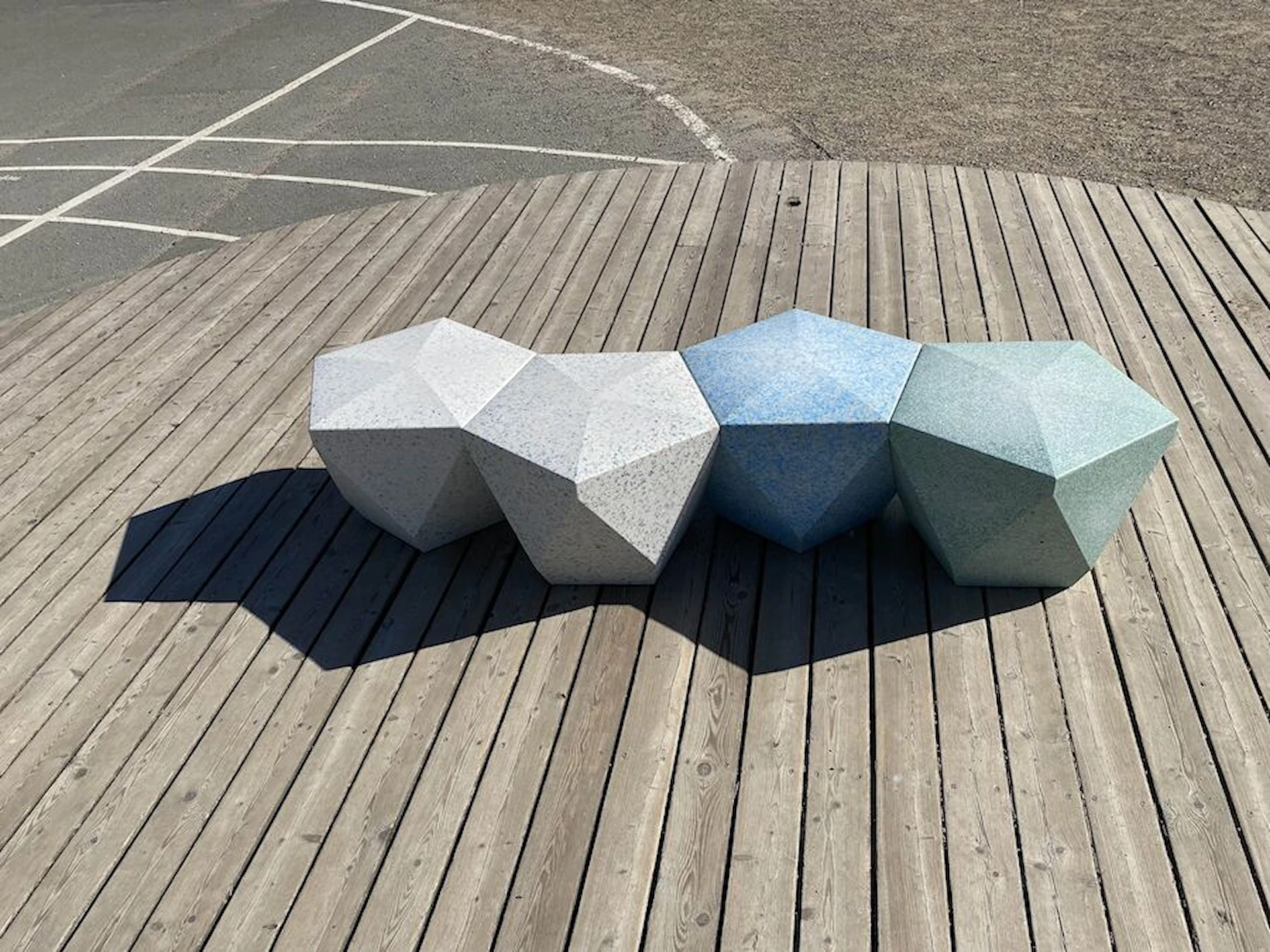 - Genbrugsplast : Genbrugsplast kræver ingen vedligehold. Materialet er vejrbestandigt og modstandsdygtigt over for hyppigt brug. For at bevare et pænt udseende kan overfladen rengøres med vand og en blød børste efter behov.