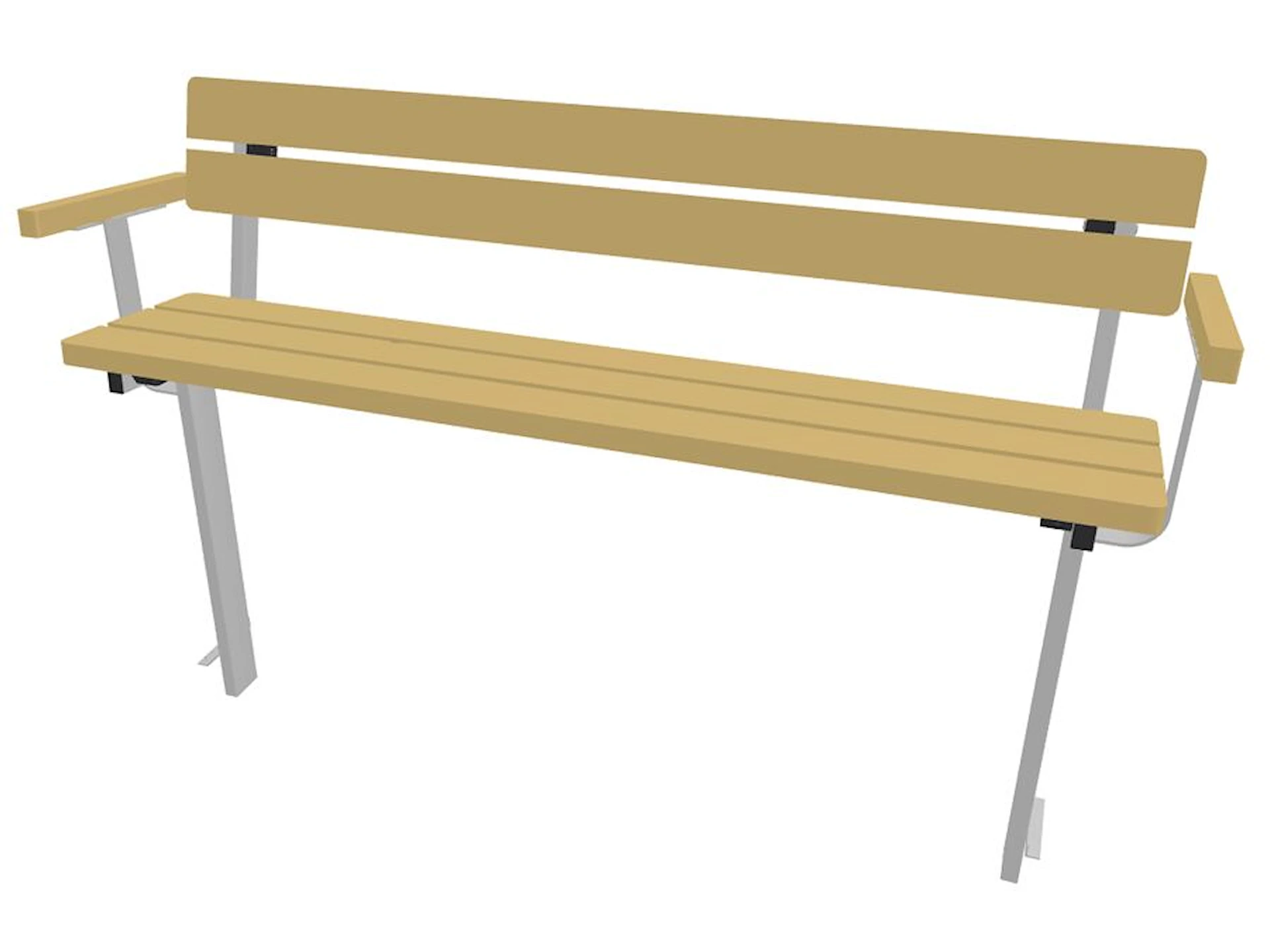 Bænken har en siddebredde på 180 cm og en siddehøjde på 47 cm, hvilket gør den velegnet til brug i offentlige rum, parker og institutioner. Leveres klar til fastmontering i betonfundament og fås også i version med armlæn for ekstra støtte og komfort.