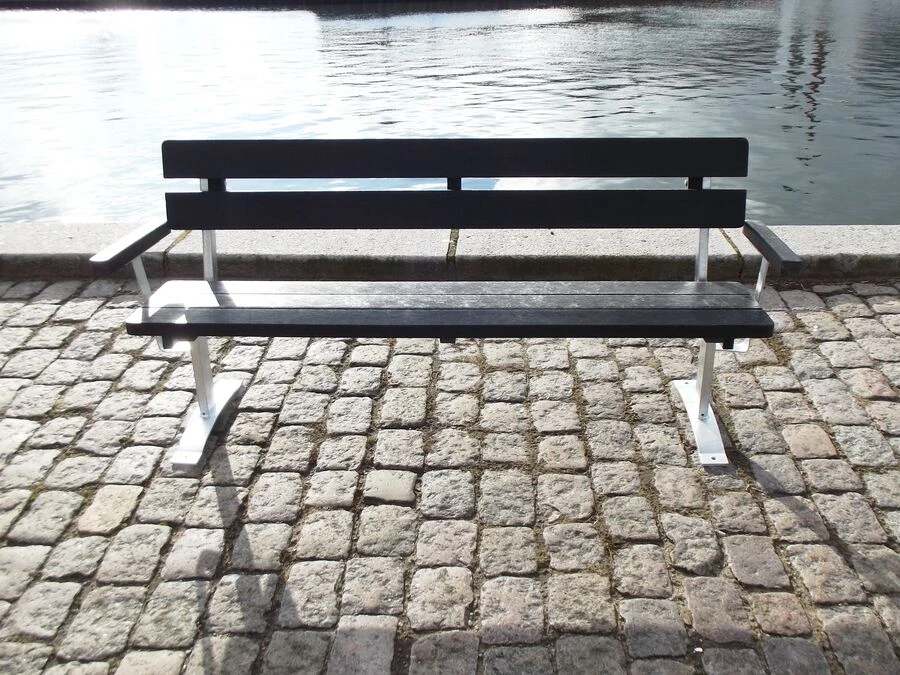 Bænk i genbrugsplast med ryglæn og armlæn