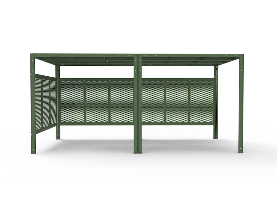Vægsektionen fås i forskellige designs og farver, der matcher pergolaen og giver udepladsen et mere stilfuldt udtryk. Her kan der nemt skabes et mere personligt præg ved at vælge forskellige designs til gavl og bagside.