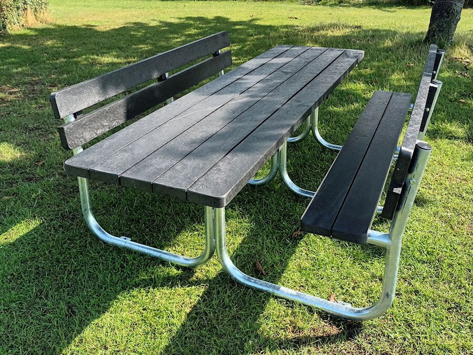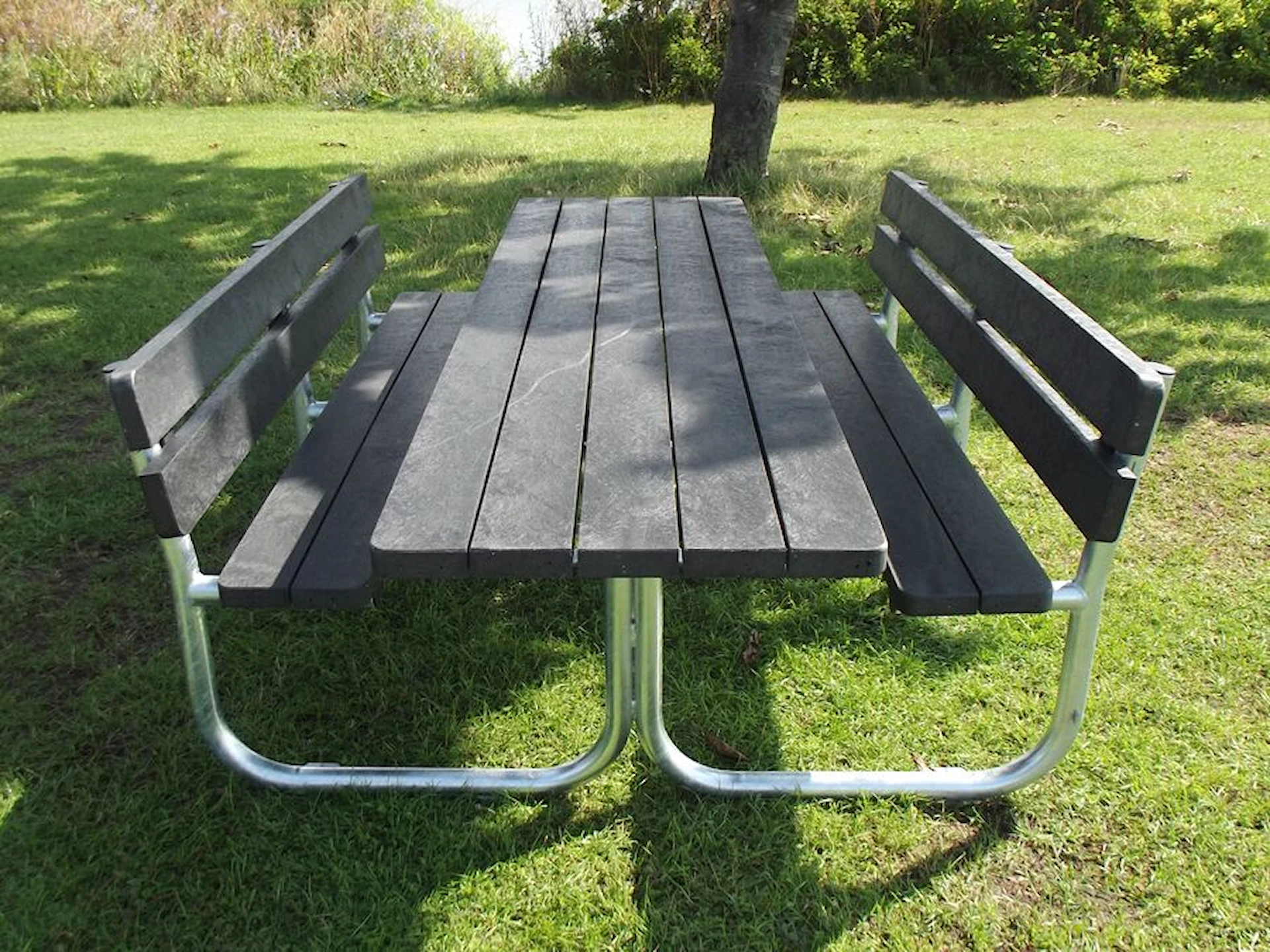 Bord og bænke fås i sort, brun eller grå.