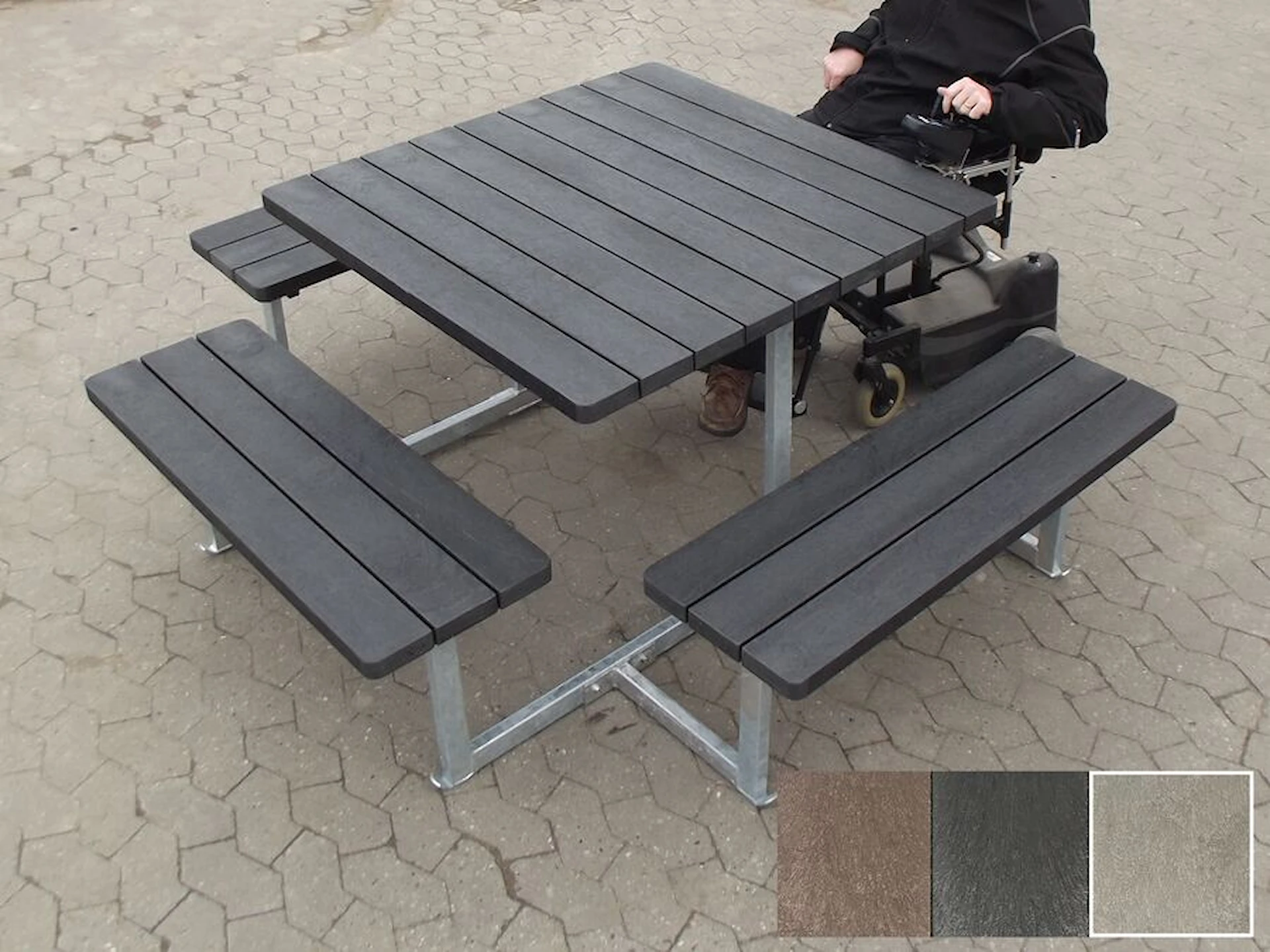 Bord bænkesæt i genbrugsplast Knud, kørestolsvenlig