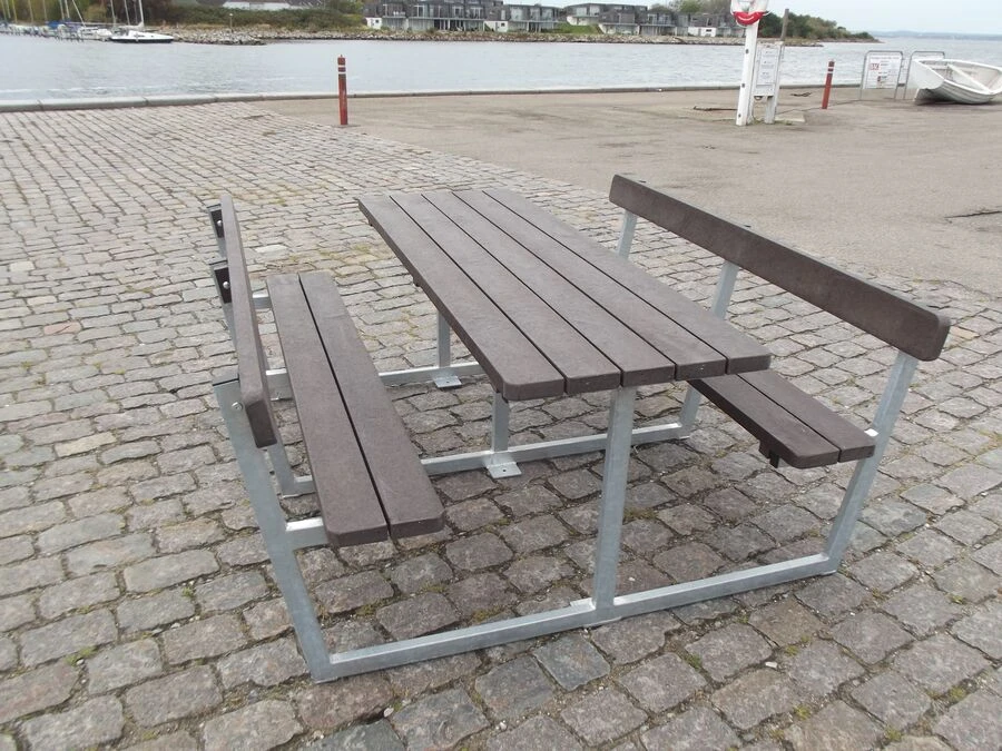 - Genbrugsplast : Genbrugsplast kræver ingen vedligehold. Materialet er vejrbestandigt og modstandsdygtigt over for hyppigt brug. For at bevare et pænt udseende kan overfladen rengøres med vand og en blød børste efter behov.