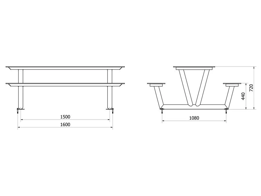 Sættet er forberedt til fastmontering i underlaget, hvilket gør det særligt velegnet til steder med meget aktivitet, såsom skolegårde, institutioner og byparker. Det stilrene design og de robuste materialer sikrer en løsning, der holder sig flot og funktionel gennem mange års brug.