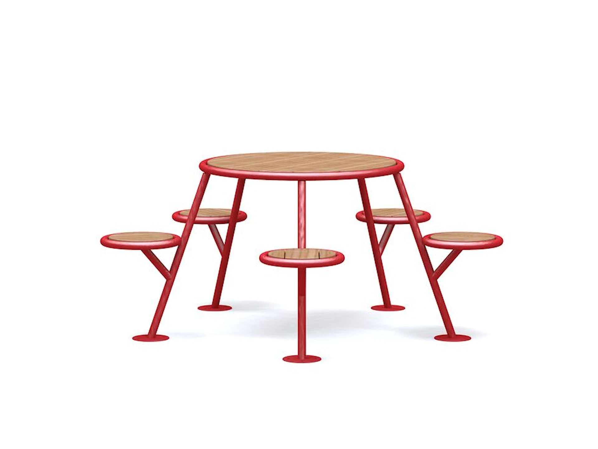 Du kan vælge fra et bredt udvalg af RAL-farver, så bordet passer til omgivelserne eller fremstår markant som del af en sammenhængende udeindretning. CIRCINUS runde bænkebord er en stilfuld og funktionel løsning, der skaber rammerne for fællesskab og samvær.