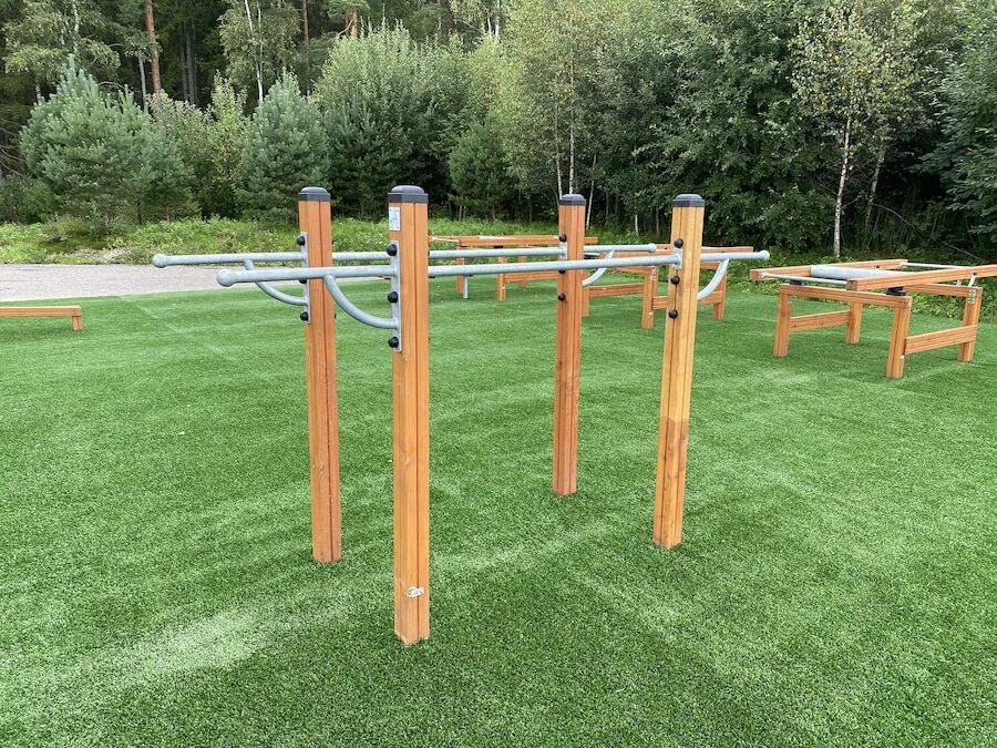 Dipsbarrer indgår i WoodFit-serien og anvendes ofte sammen med andre træningsstationer for at skabe helhedsorienterede udemiljøer med fokus på funktionel træning, motorik og alsidig bevægelse.