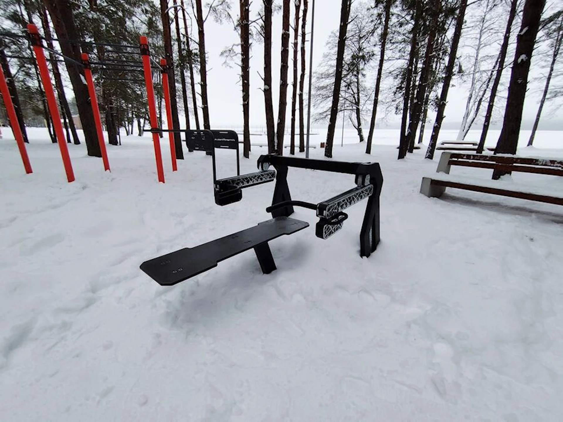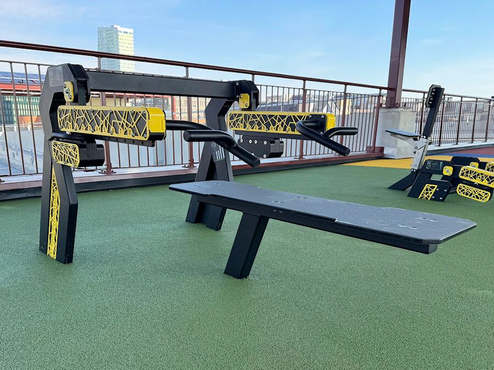ElementFit Bench Press er lavet af materialer af høj kvalitet og kan tåle alle slags vejrforhold hele året. Maskinen leveres samlet på platformen.