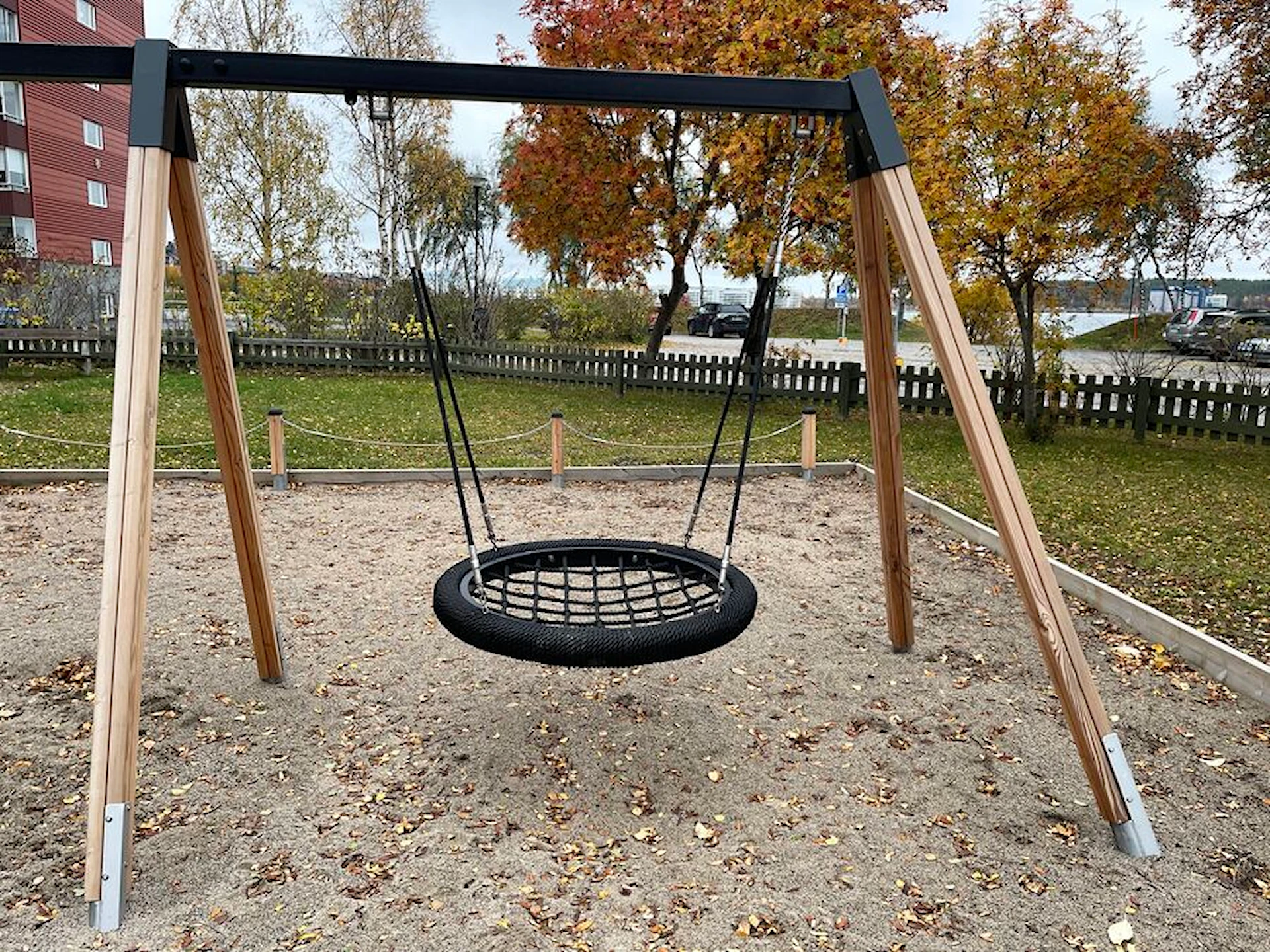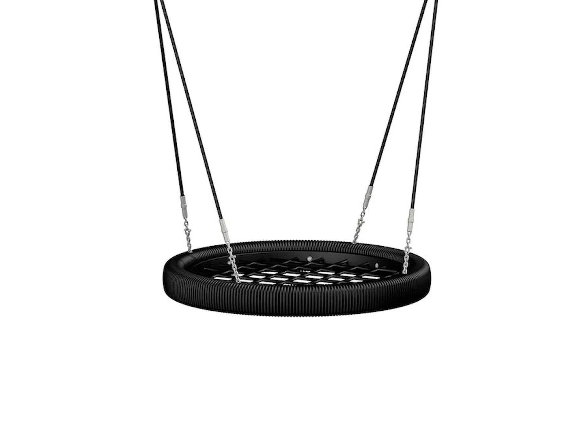 Fugleredegyngen kan monteres på standard gyngestativer og integreres i forskellige typer udendørs legemiljøer. Den fås i to størrelser: Ø 98 cm med plads til op til 2 børn og Ø 120 cm med plads til op til 3 børn ad gangen.