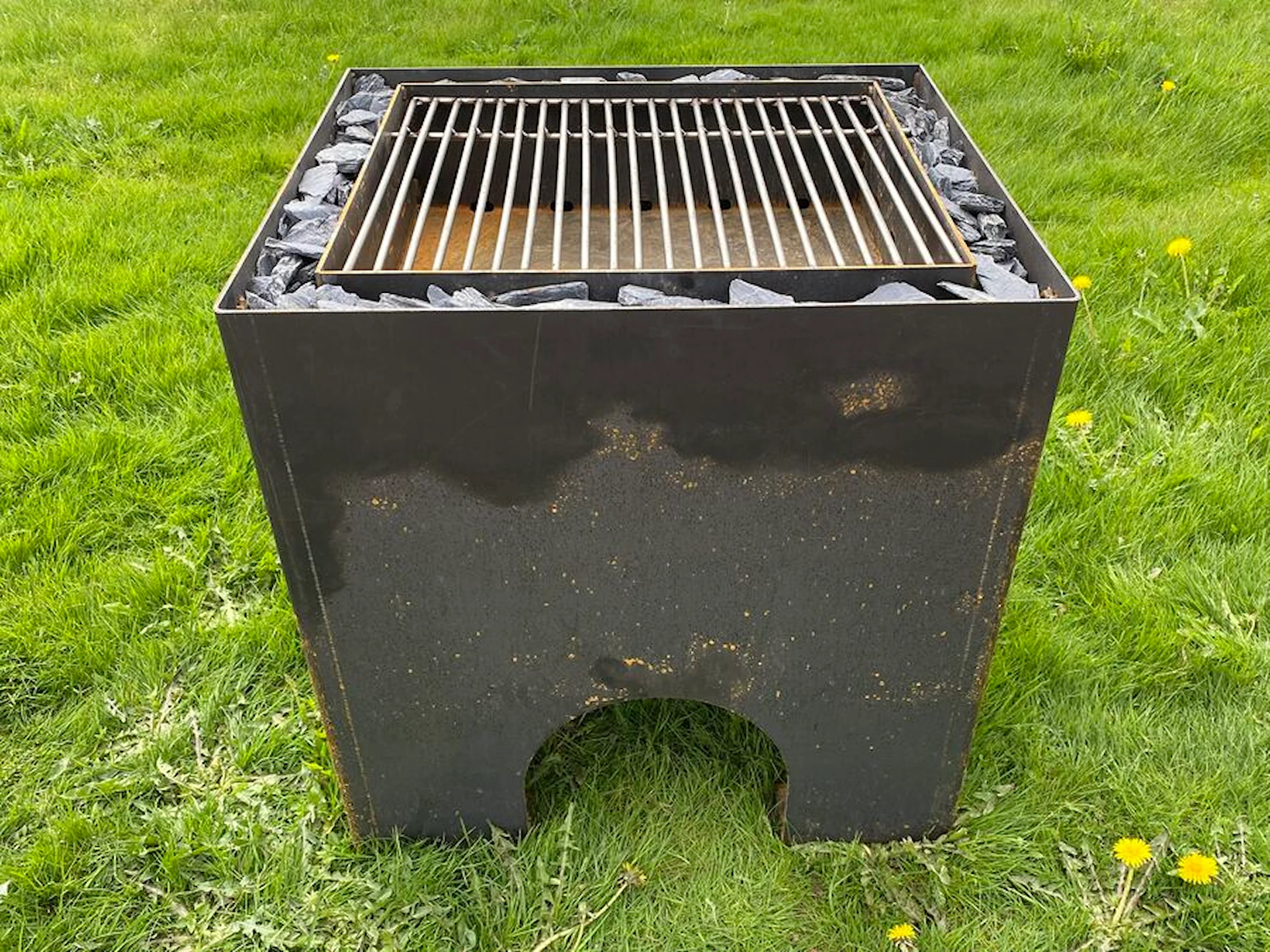 Grill i cortenstål, kvadratisk åben