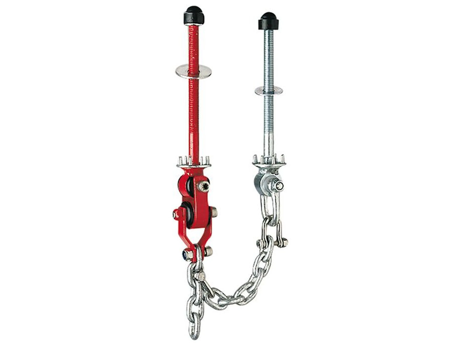 Monteres i den vandrette overligger på gyngestativet, i eksisterende huller eller efter forboring der hvor emnet skal hænge.