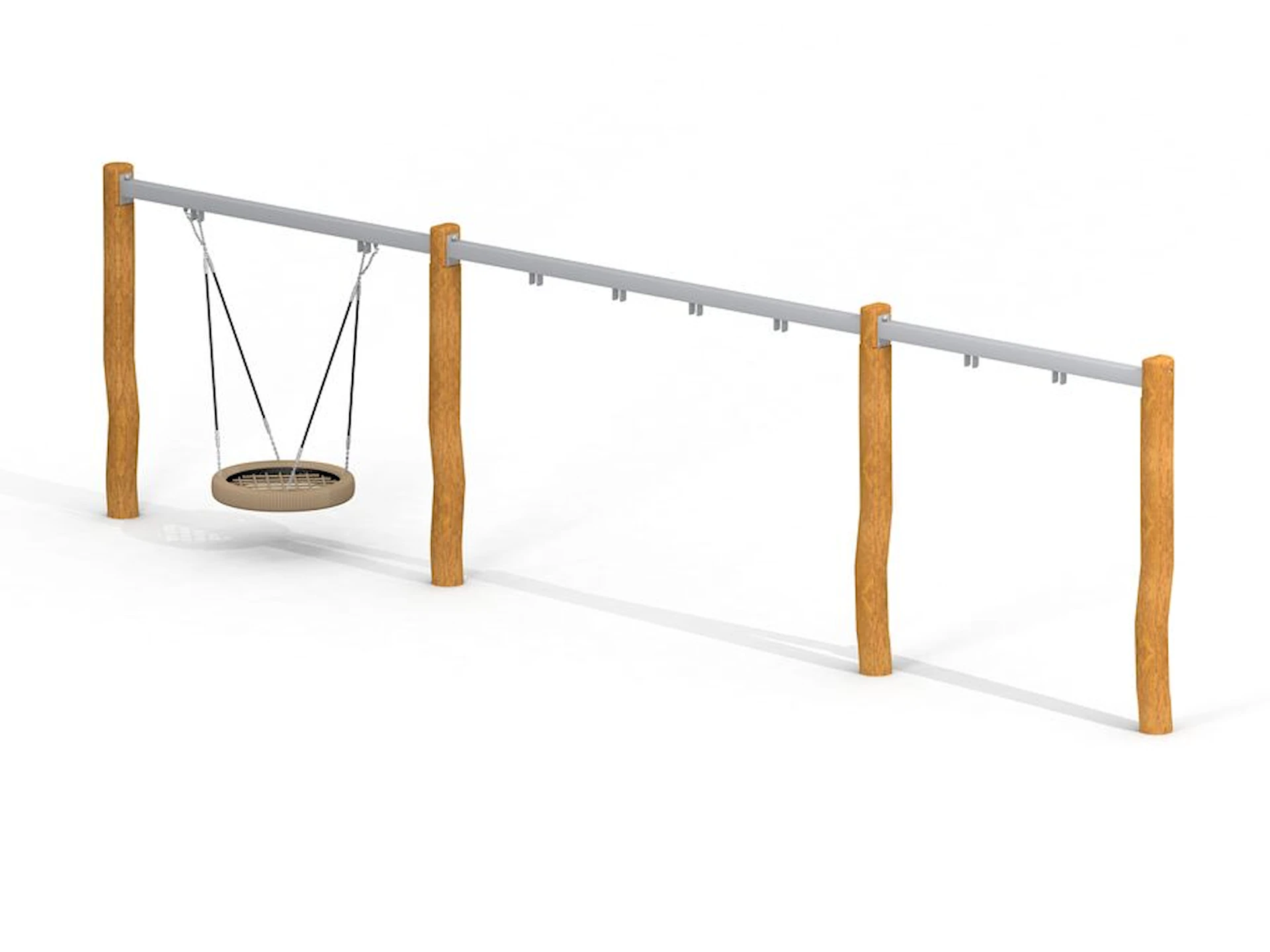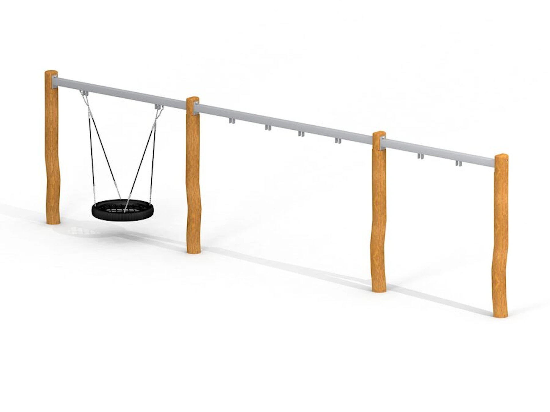 De tre ekstra ophæng kan udstyres med gyngesæder efter behov og gør stativet fleksibelt i forhold til aldersgruppe og aktivitetsniveau.