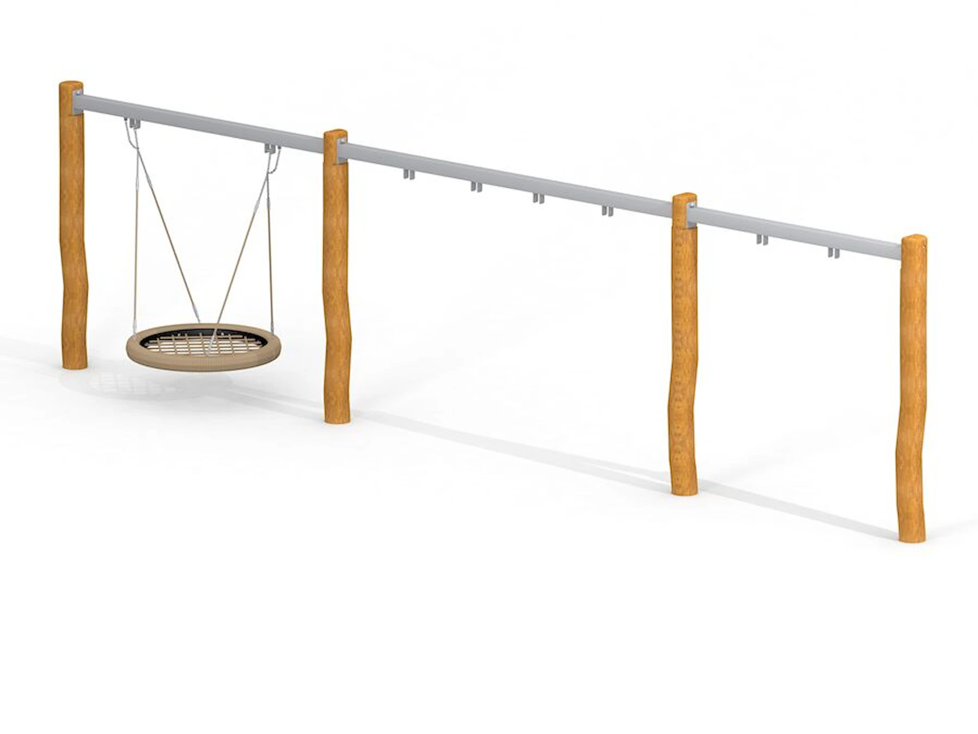 De tre ekstra ophæng kan udstyres med gyngesæder efter behov og gør stativet fleksibelt i forhold til aldersgruppe og aktivitetsniveau.