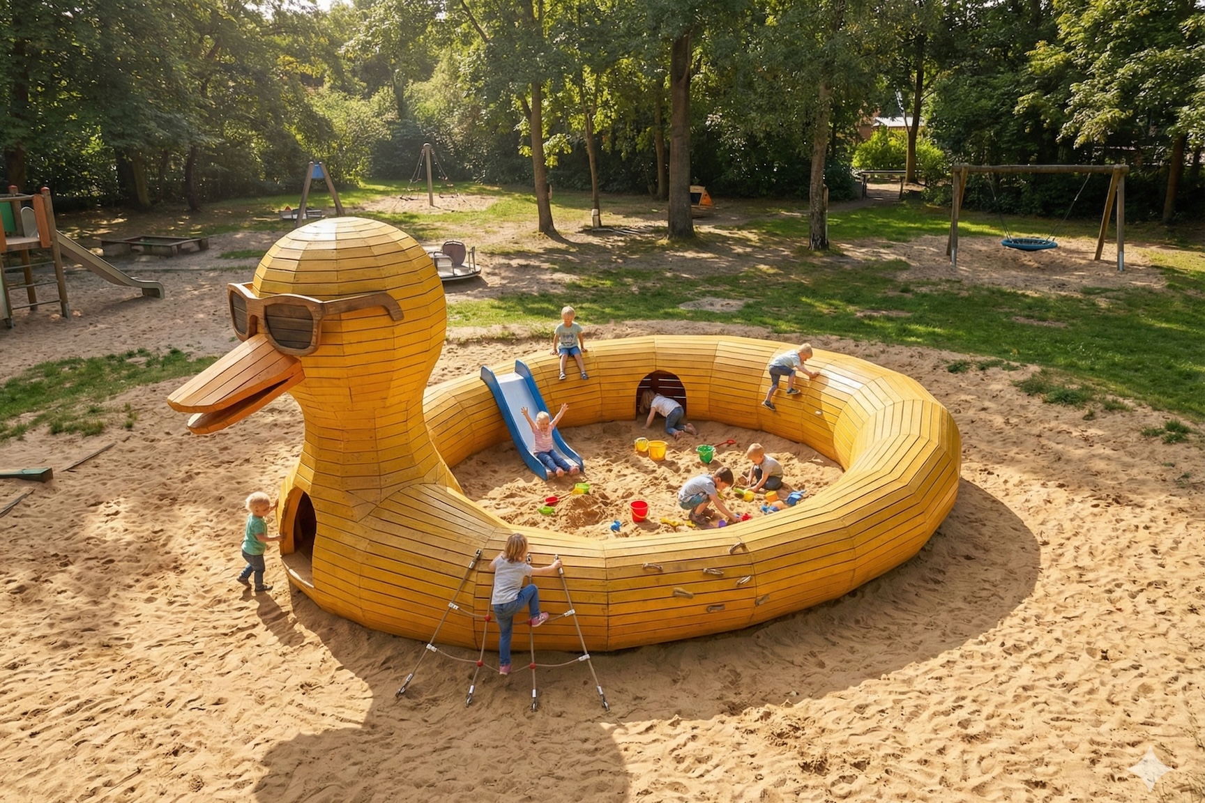 Signaturlegepladser kan også fungere som udendørs læringsrum og opholdsarealer – hvor leg, læring og fællesskab mødes.