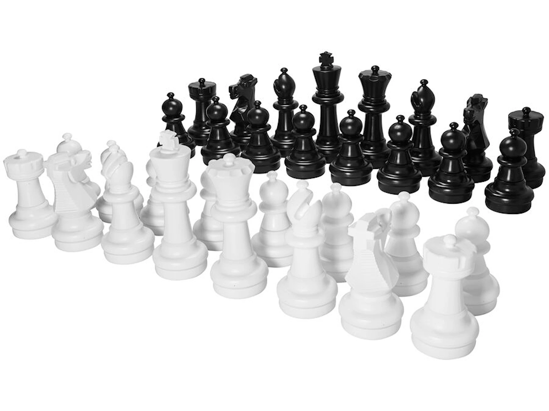 Inkluderet i sættet er alle de nødvendige skakbrikker for at spille et fuldt skakparti. Skakbræt til udendørs spil er ikke inkluderet, men kan købes separat.