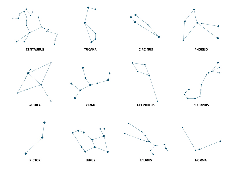 Der findes aktuelt 16 produktfamilier under Mobilis Design-brandet. Produktfamilierne er opkaldt efter de latinske navne på forskellige stjernebilleder, fordi vi ser en interessant parallel mellem dét at designe rum i rummet med møbler i et inspirerende udemiljø og så de linjer og vinkler samt stjernernes indbyrdes forhold, der udgør de forskellige stjernebilleder i himmelrummet.
