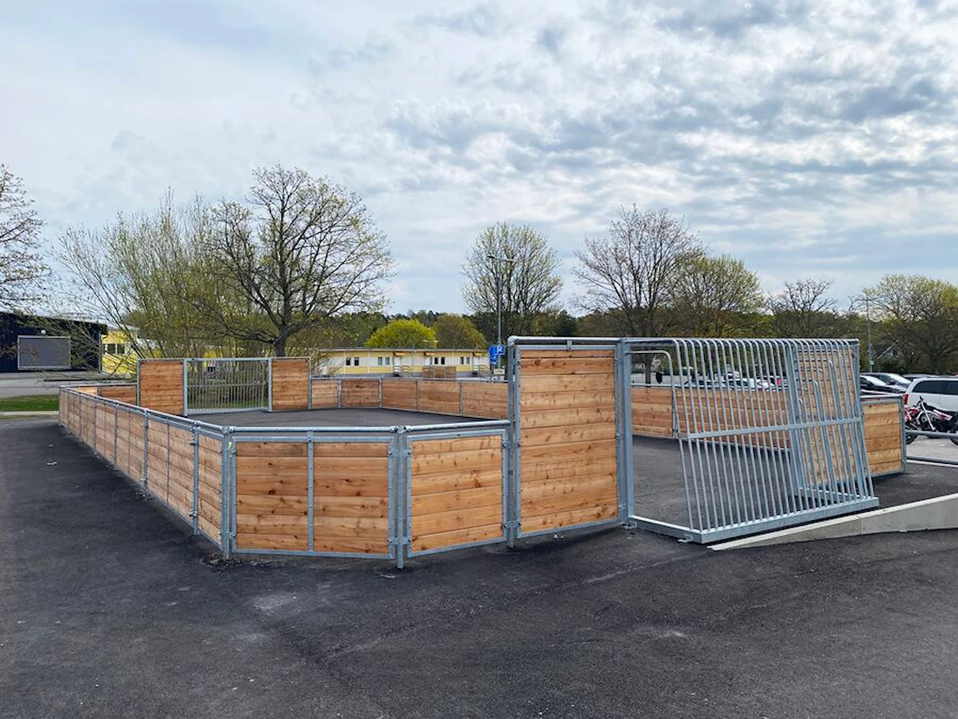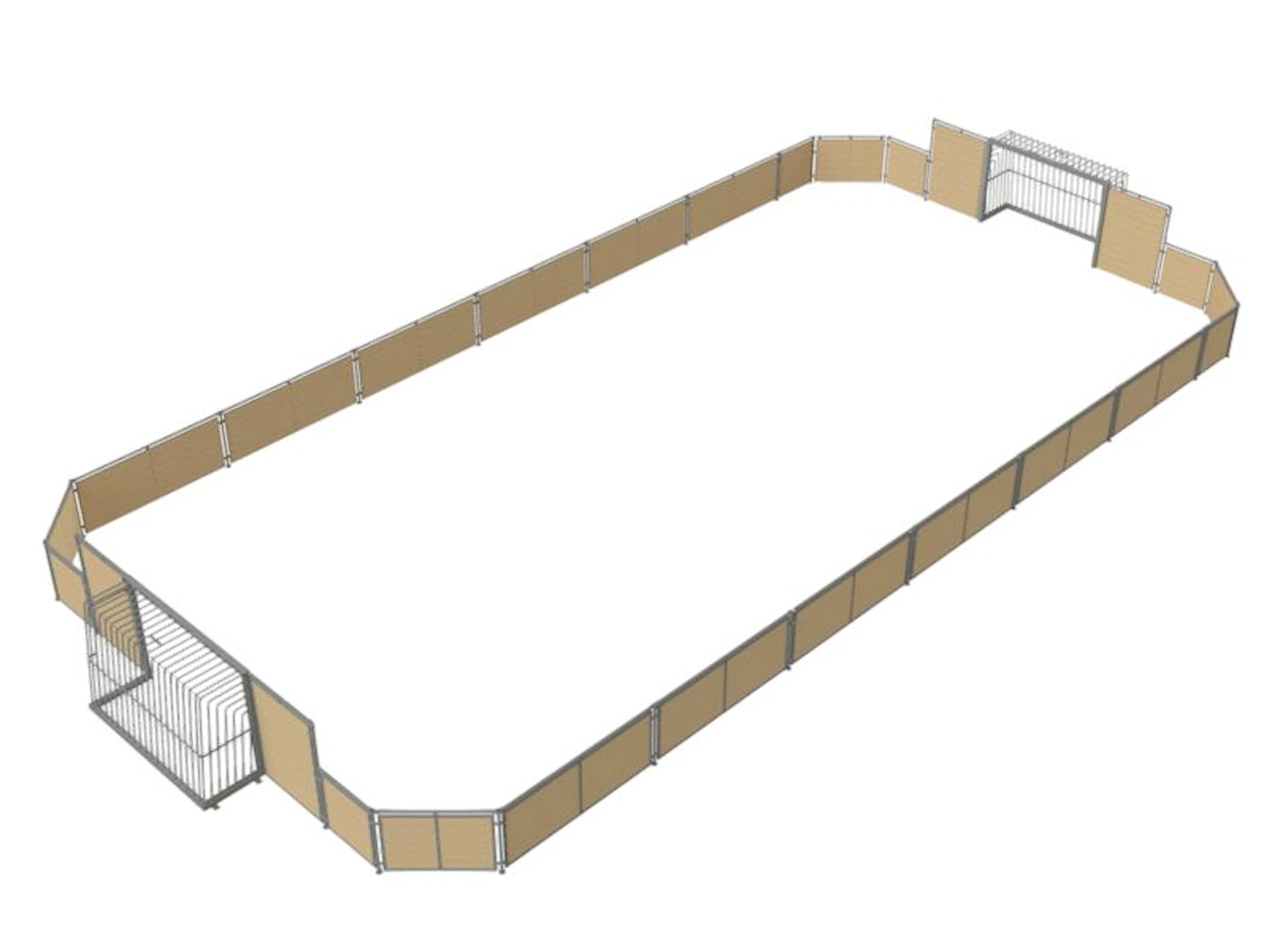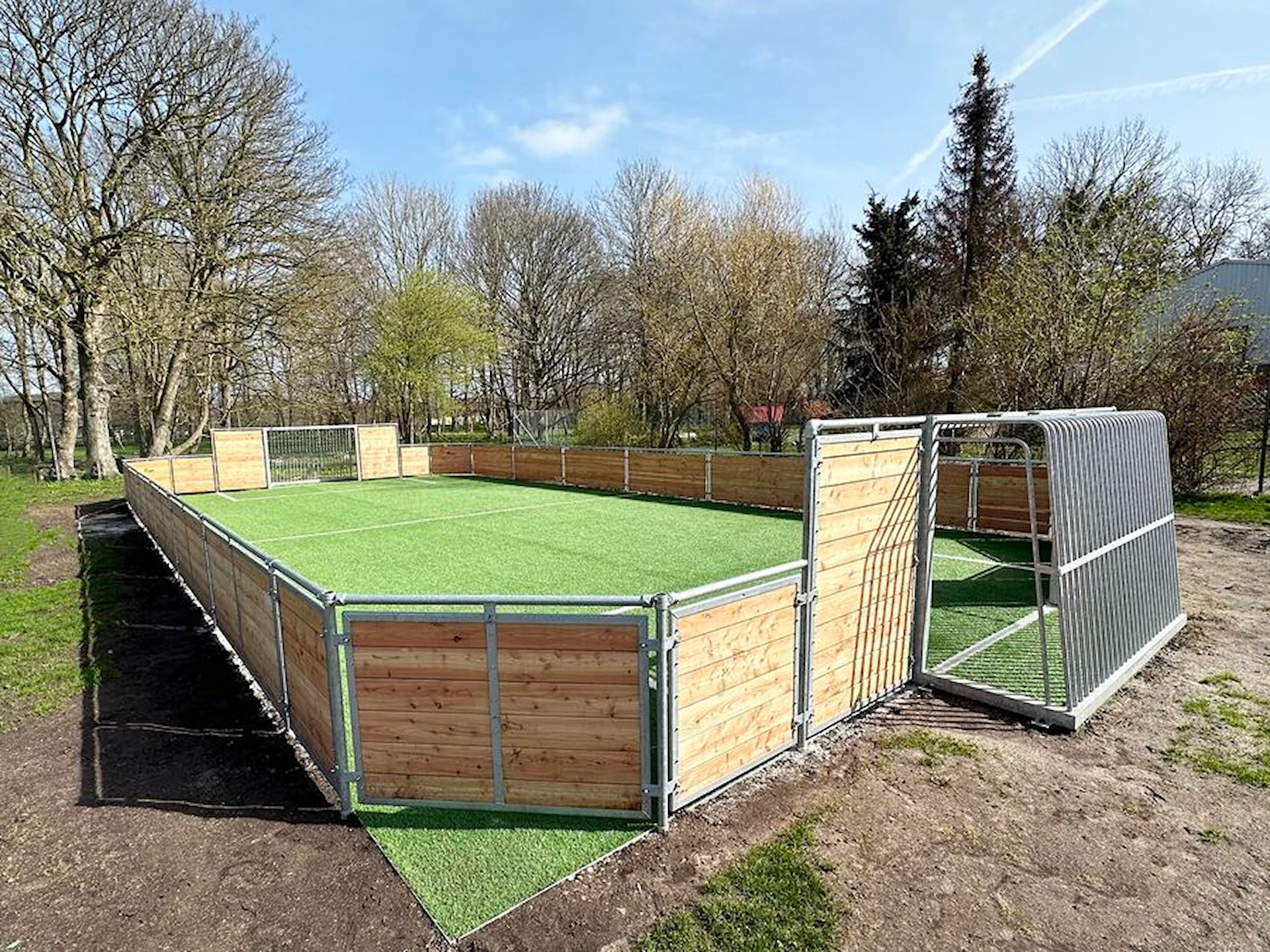 Arenamålene (240 x 160 cm) har en åben side, der giver hurtig og nem adgang til banen og understøtter spontan leg. Et sidemodul fungerer som servicelåge, og de fuldsvejsede mål er forberedt til eftermontering af basketmodul.