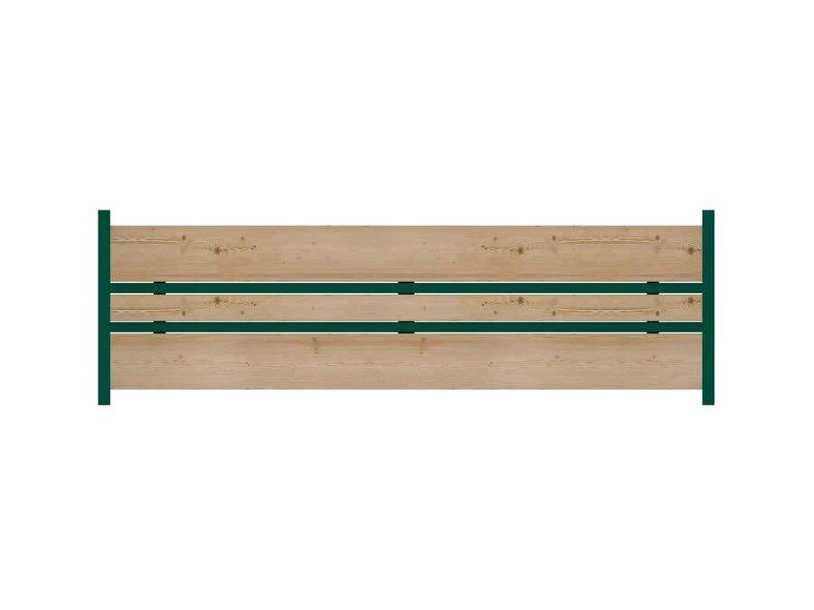 Siddepladsen består af træplanker, som tilfører varme og skaber kontrast til stålets mere markante udtryk. Materialesammensætningen giver en balanceret helhed i både grønne og urbane omgivelser.