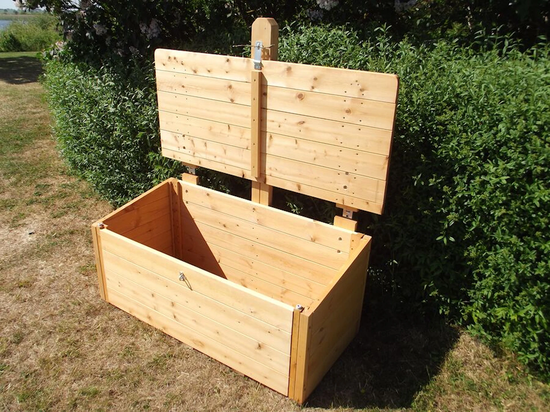 Låget kan også aflåses med hængelås i lukket position (Hængelås medfølger ikke).