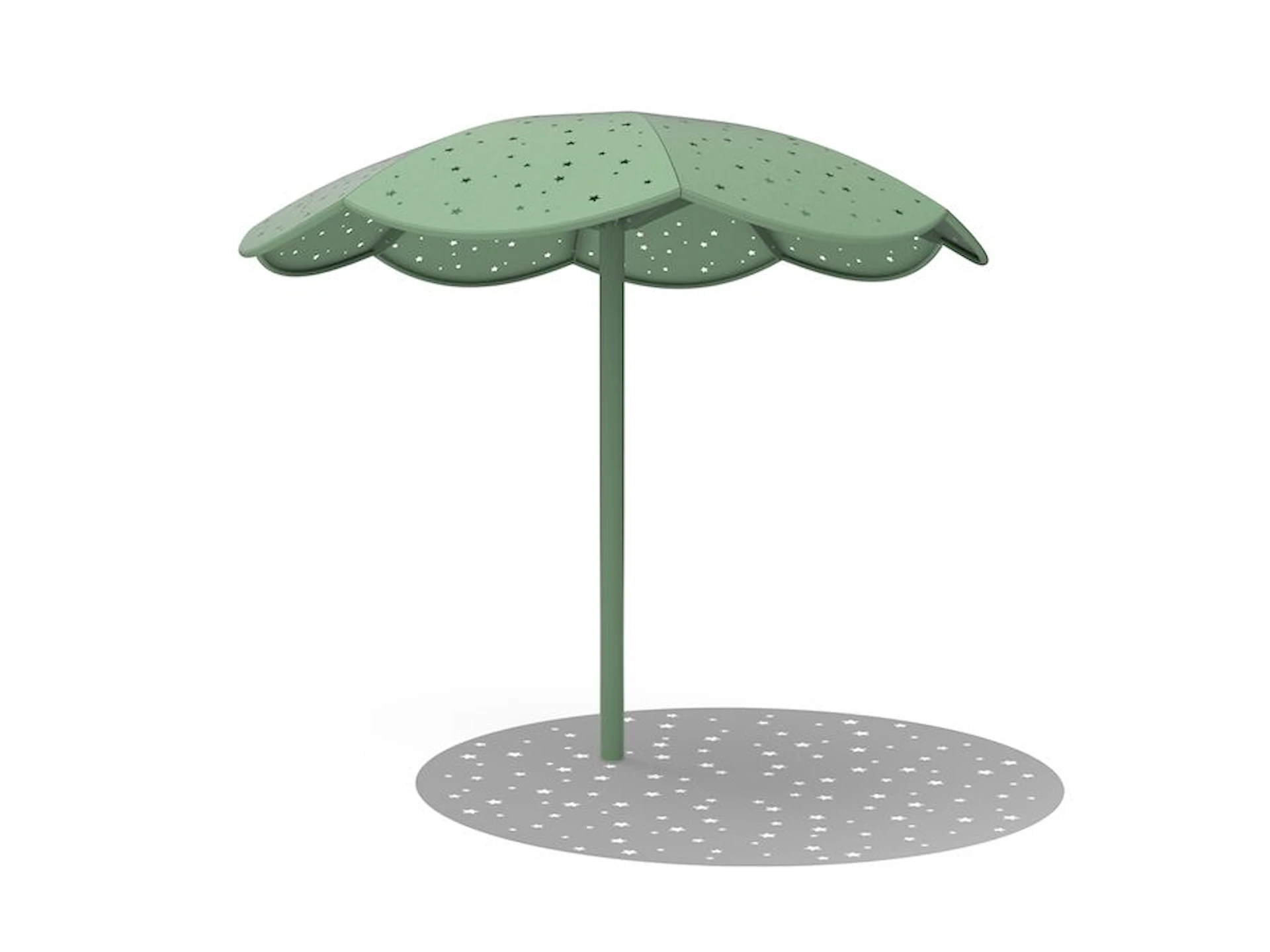 Parasollen nedstøbes i jorden og står stabilt år efter år.