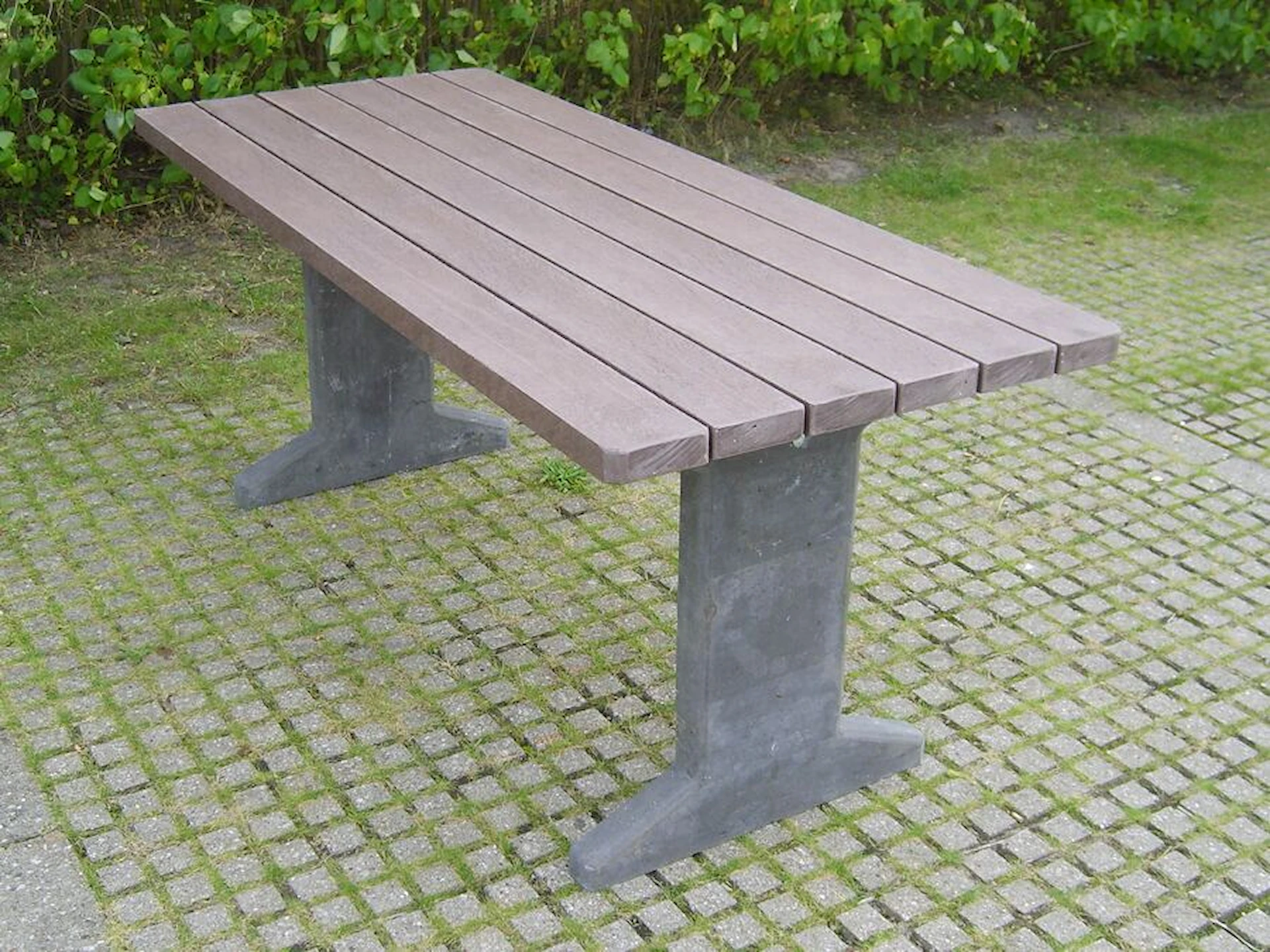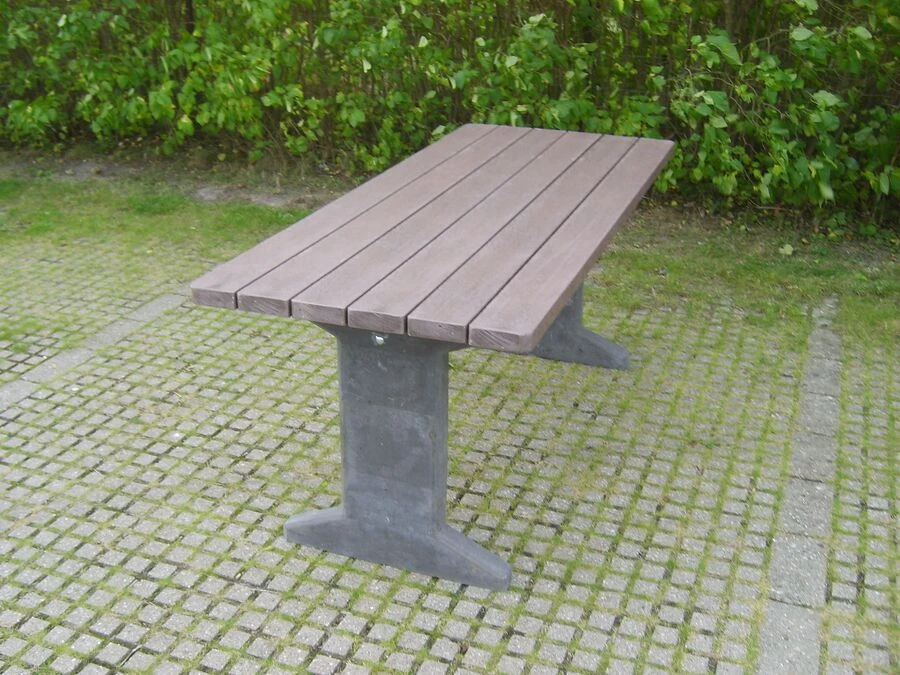 Bordet leveres med færdigsamlet bordplade og er forberedt til fast montering på underlag. Vælg mellem plastplanker i sort, brun eller grå. Et slidstærkt og vedligeholdelsesvenligt parkmøbel til helårsanvendelse.