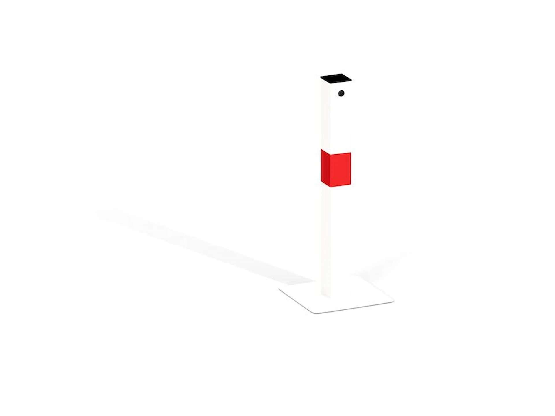 Barrierens firkantede profil måler 5 x 5 x 0,2 cm. Basen(Foden) måler 20 x 20 cm og er 0,5 cm tyk. Monteringsskruer medfølger.