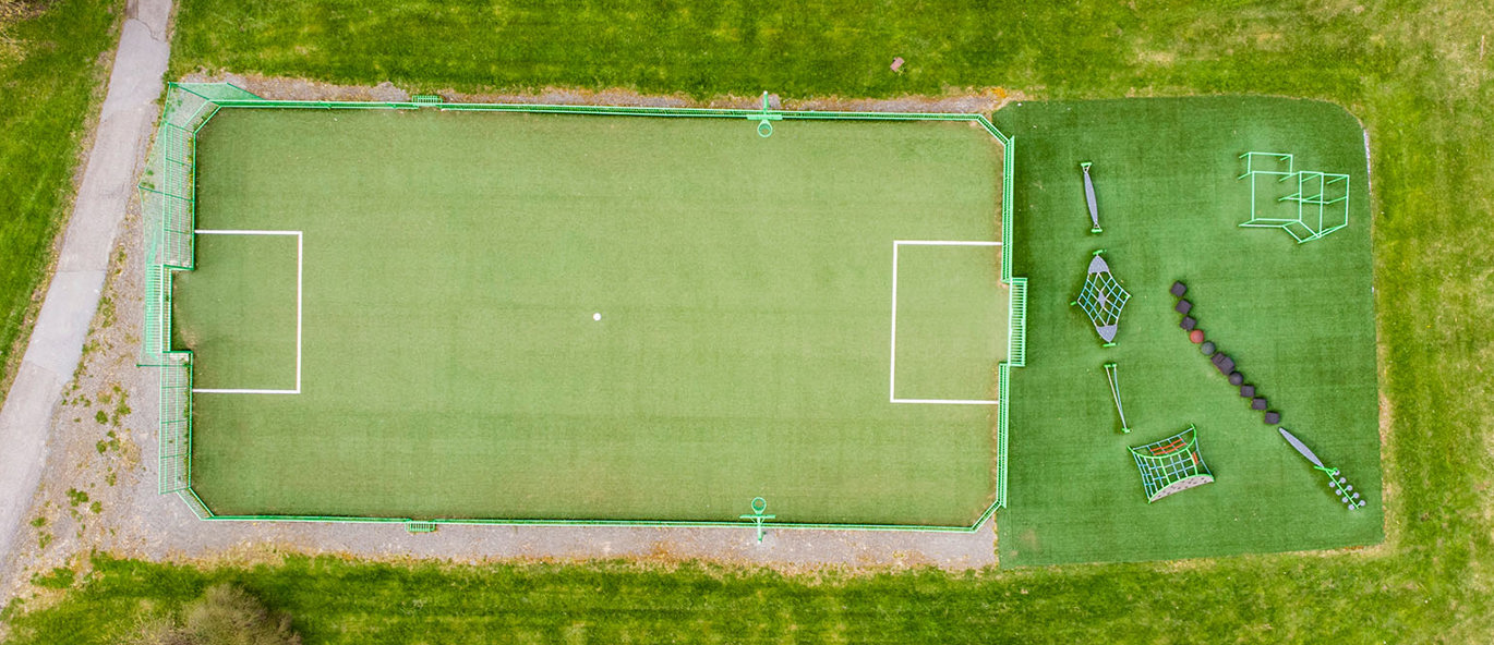 I Guldsmedhyttan blev der bygget en helt ny multiarena med kunstgræs, hvor de unge i området kan spille alverdens boldspil på kryds og tværs i arenaen.