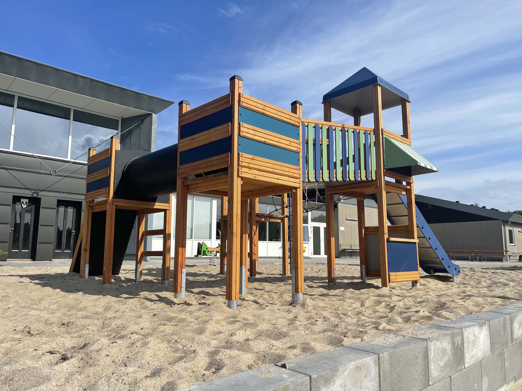 Vestjysk Fritidscenter i Ulfborg har fået en ny legeplads i et klassisk look med mange legemuligheder for flere aldersgrupper. Legepladsen ligger i direkte forbindelse med byens fodboldbane og giver gode muligheder for at samle hele familien.