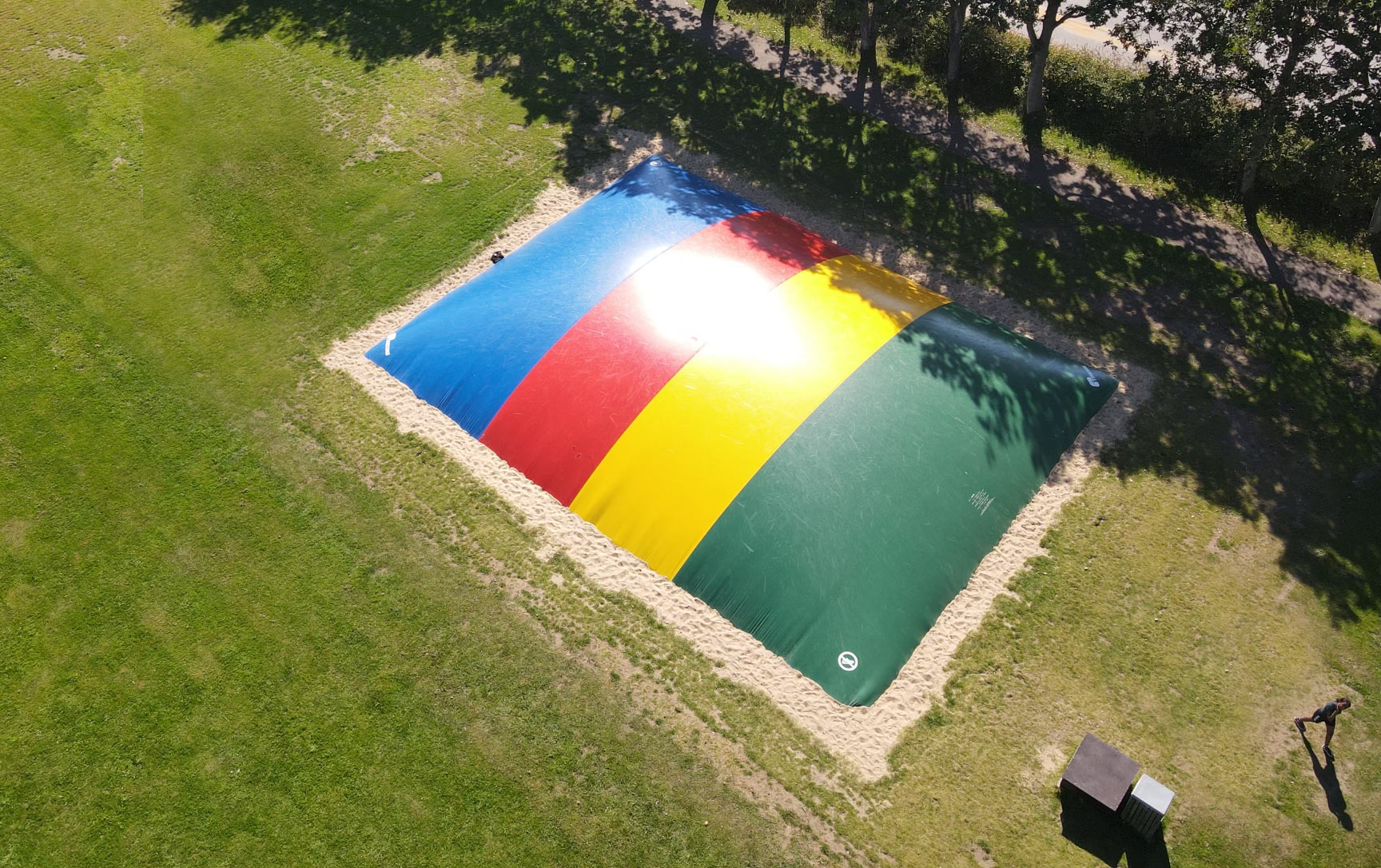Hoppepuden har med sine 15x12 meter en stor springflade, der giver plads til mange børn på samme tid.