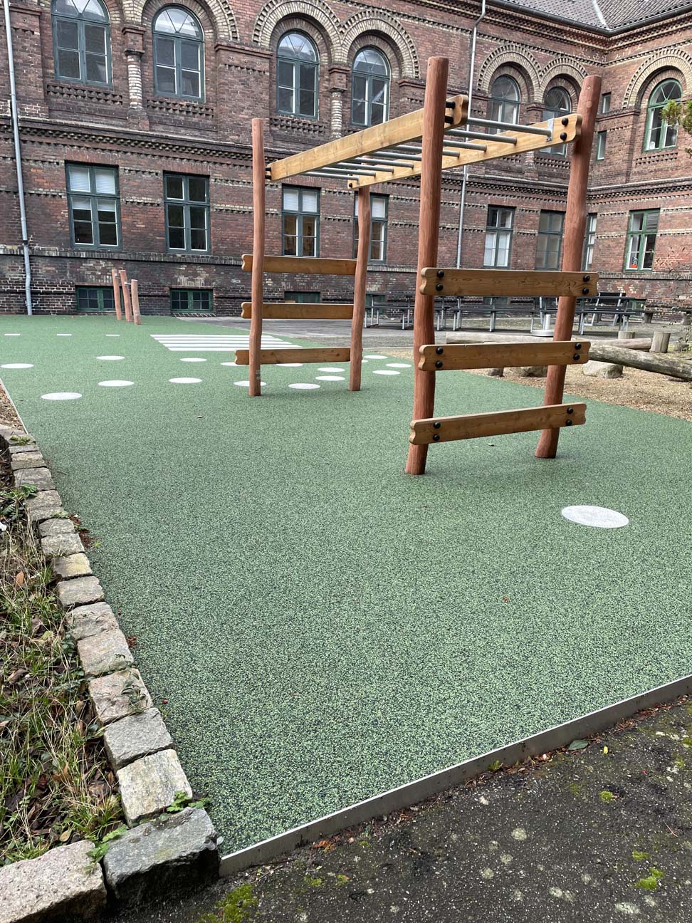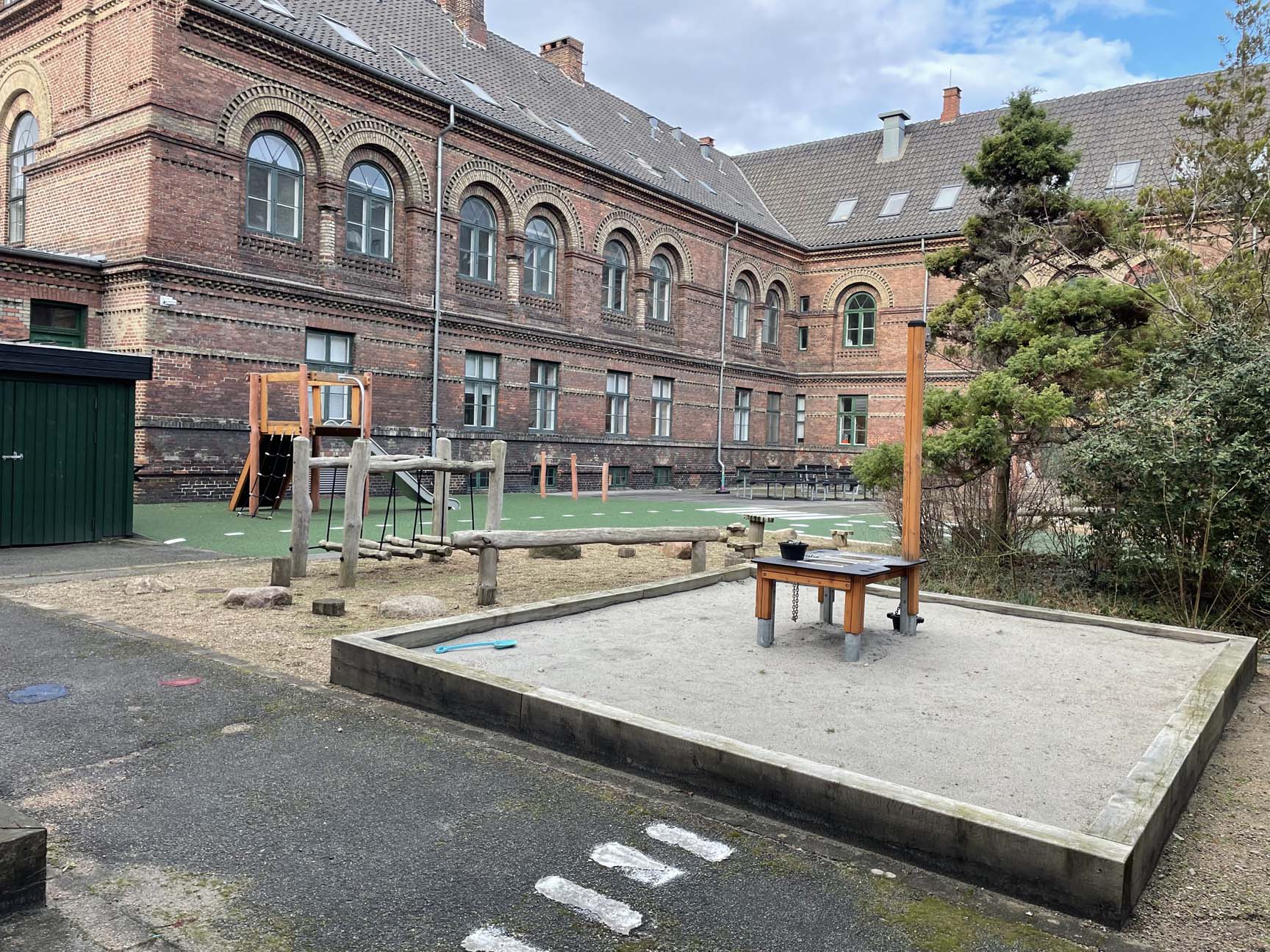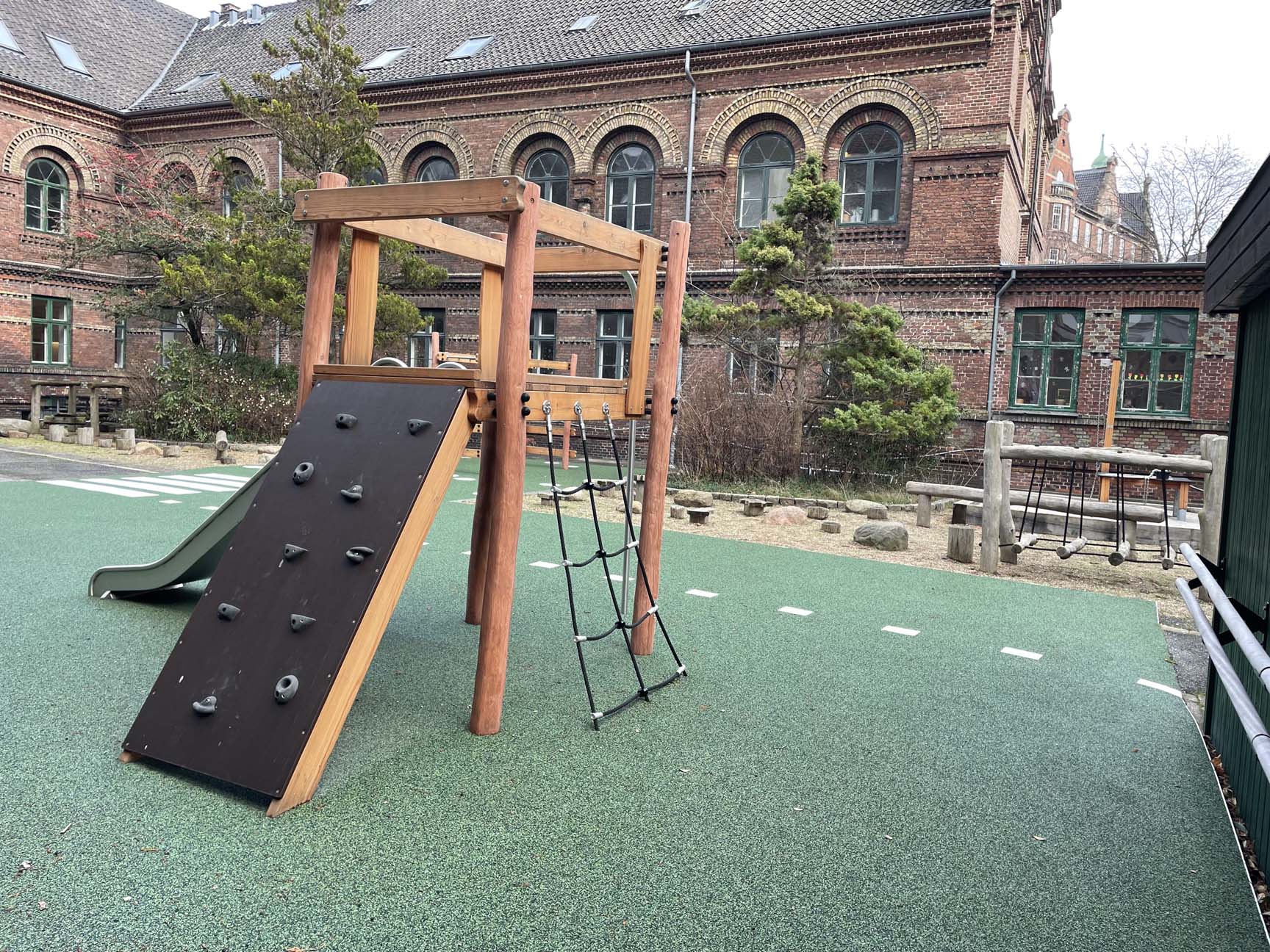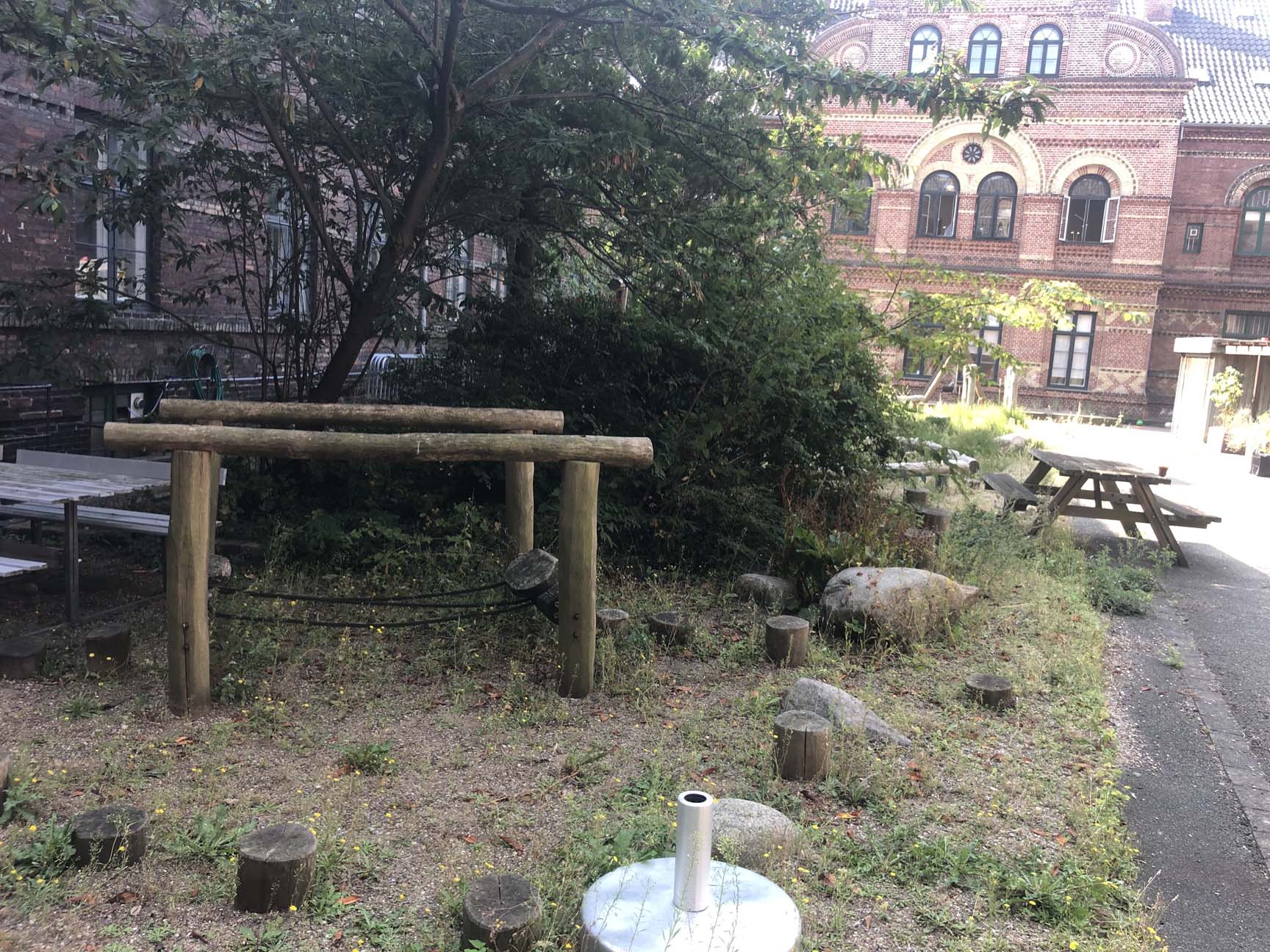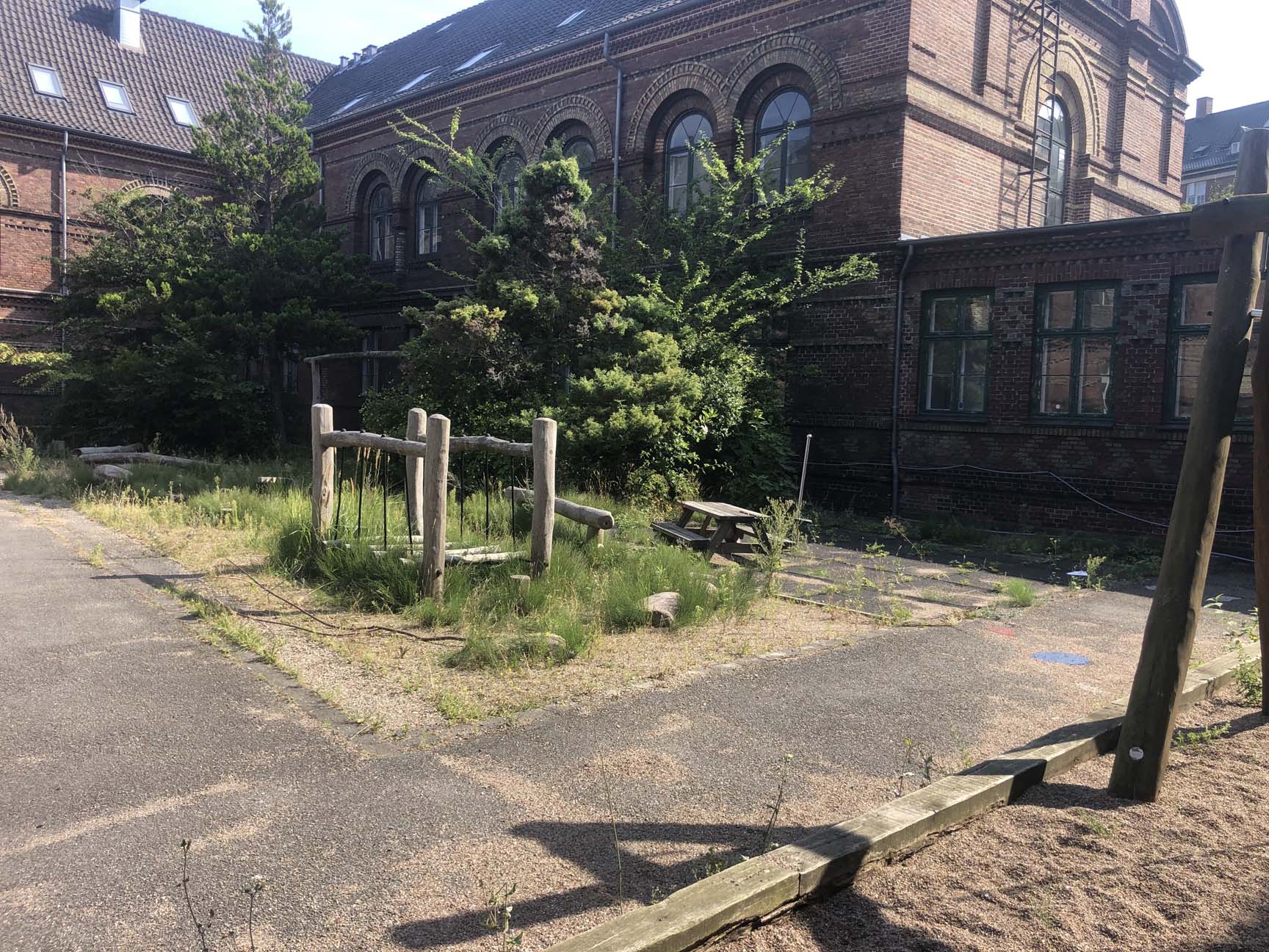Udeområdet og legepladsen stod tidligere totalt ubrugeligt hen med masser af ukrudt og vild bevoksning. Men ikke længere! TRESS har stået for at totalrenovere legepladsen fra A-Z og har i samarbejde med kunden fået skabt et indbydende område med fokus på balance og motorik samt gode opholdspladser for personalet.