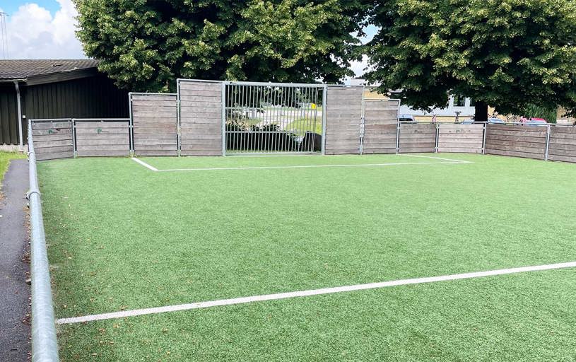 Den nye bane bruges primært af Odense KFUMs fodboldhold – og blev fx indviet med et U7-U8 pigestævne. Når banen er ledig, må den dog meget gerne bruges af alle, der besøger området.