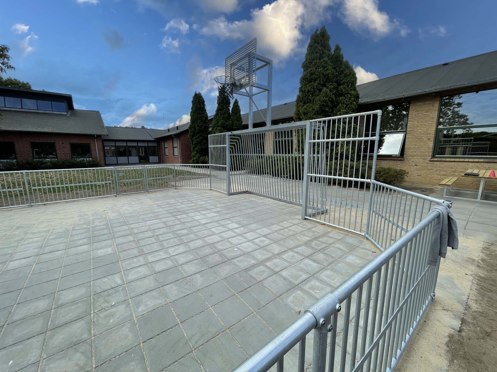 Lynghedeskolen i Grindsted har fået en 100% vedligeholdelsesfri multibane i specialmål, som passer perfekt til et bart område mellem skolens bygninger. Her kan eleverne slå sig løs med forskellige slags boldspil i både frikvarteret og efter skole – og så kan banen også bruges i idrætstimerne.