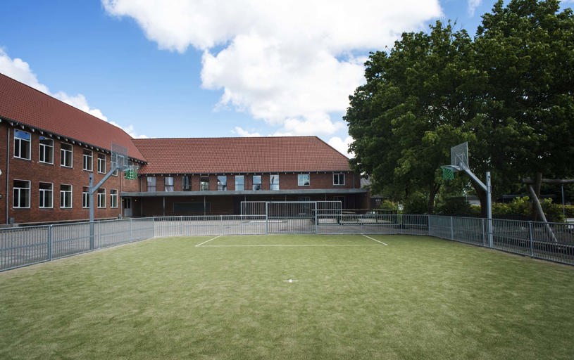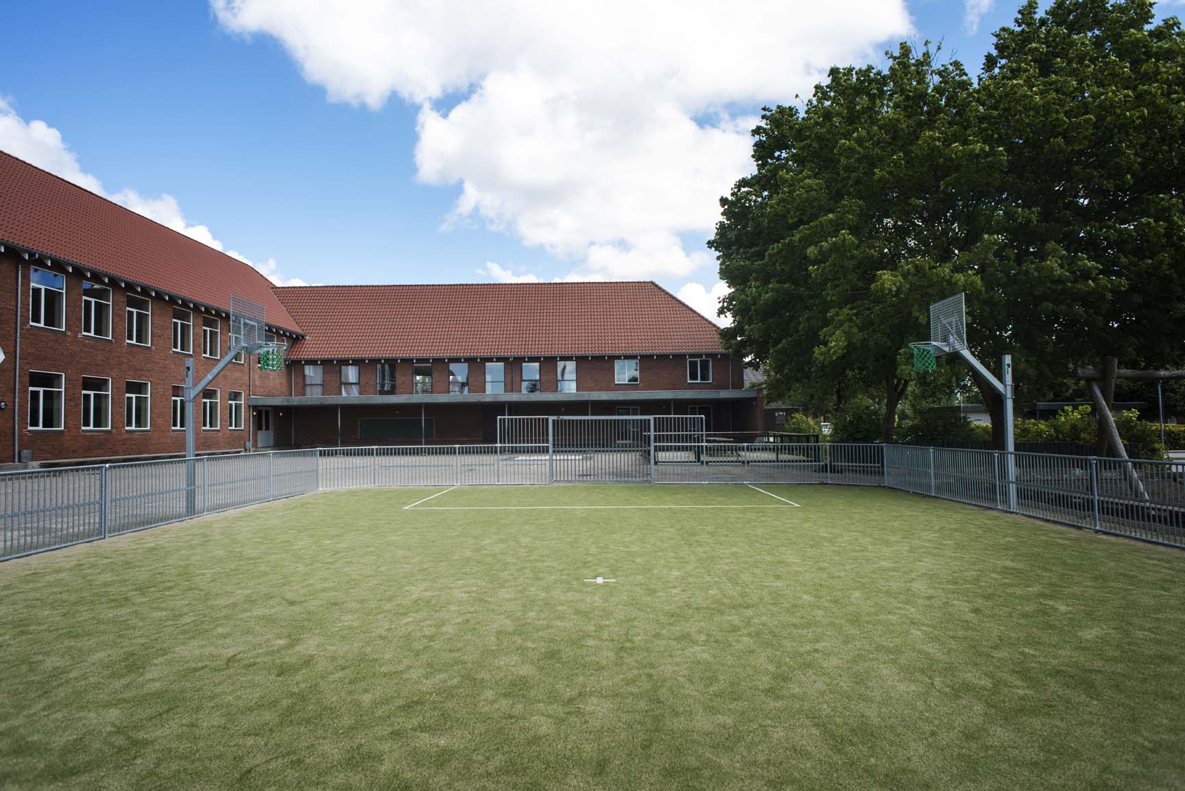Udover fodbold er der også mulighed for at spille basketball og hockey på den nye multibane. 99 procent af al aktivitet i skolegården er forskellige former for boldspil – og derfor passer banen perfekt ind.