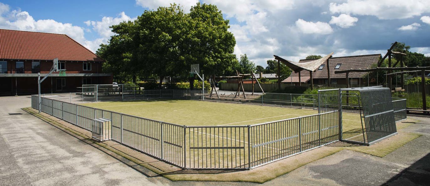 Selve multibanen består af bander og mål i varmgalvaniseret stål, hvilket gør banen total vedligeholdelsesfri – uanset vind og vejr. Det betyder utroligt meget i hverdagen, hvor skolens pedel nu ikke længere skal bruge tid på at reparere gamle træbrædder og udskifte rustne søm.
