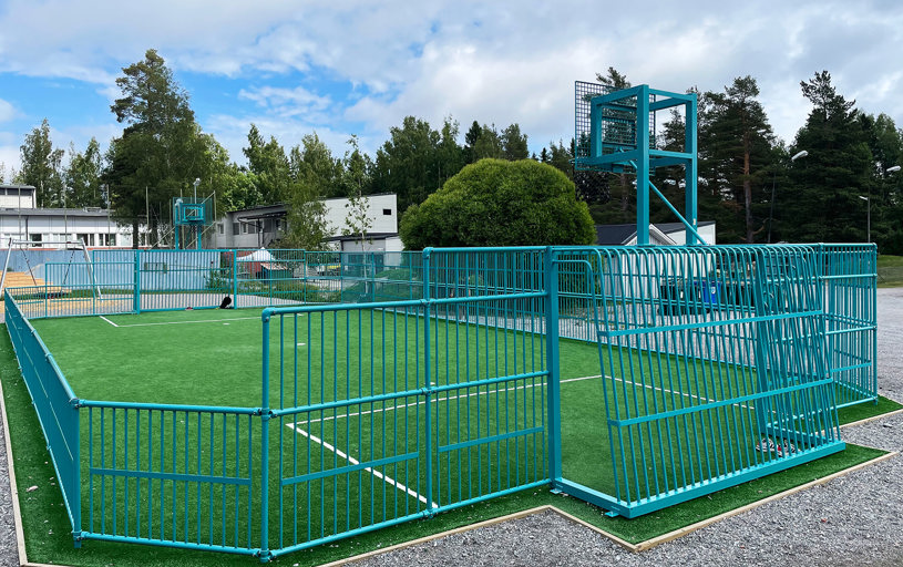 Der var også en vision for farven, og det endte med RAL 5018 Turkisblå, som lyser flot op i området. Den farverige multibane tiltrækker nu skolebørn til aktiviteter, der får pulsen til at stige – både i skoletiden og i fritiden.