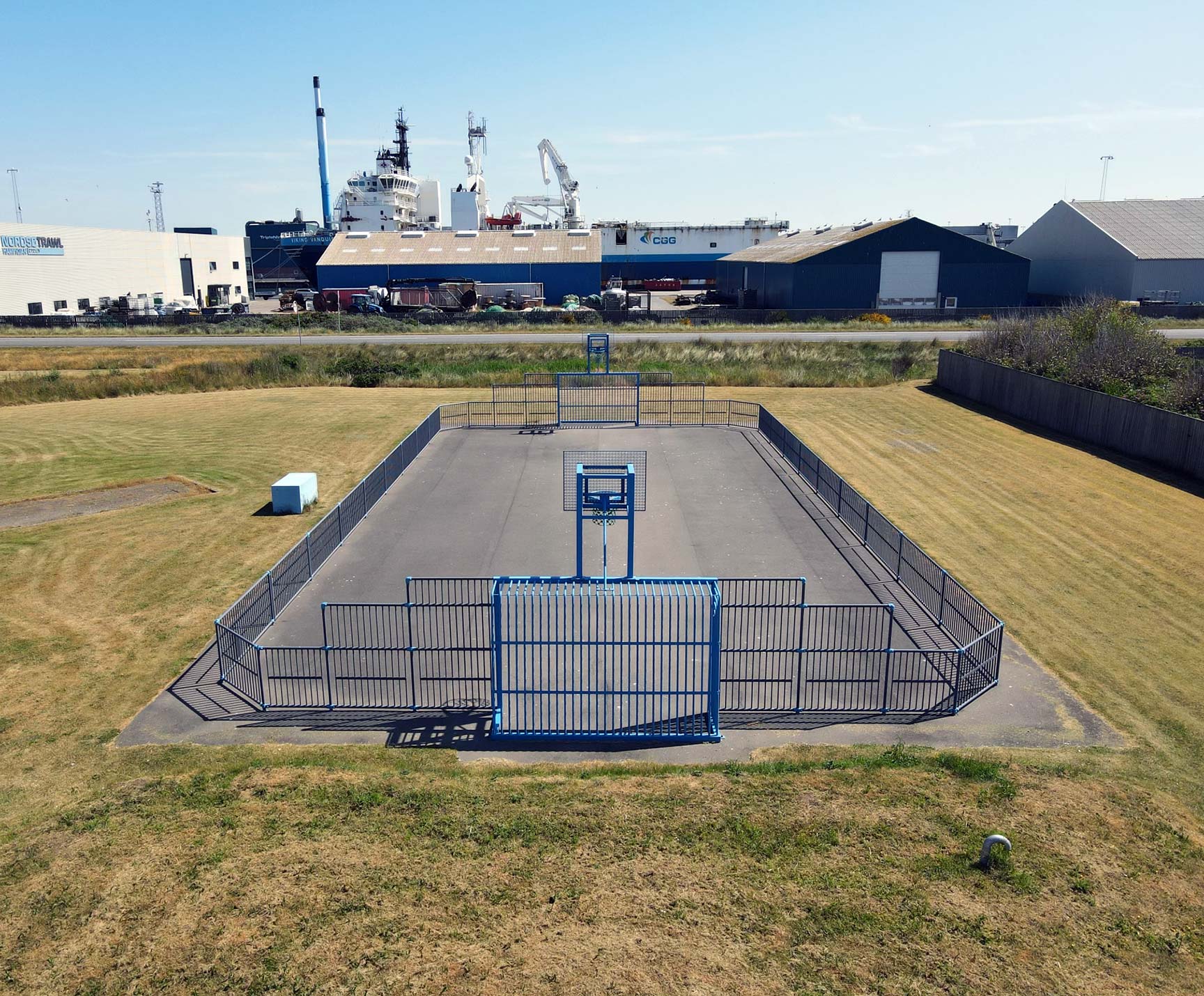 Multibanen ved Fiskeriskolen står ca. 300 meter fra Vesterhavet. Det gør den til den mest yderligt beliggende multibane i Danmark.