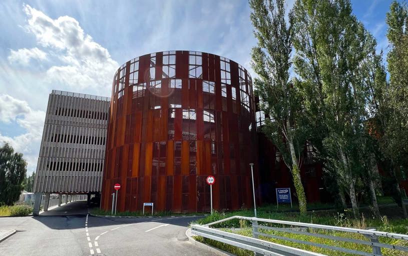 Crosstraineren kræver minimal vedligeholdelse og er leveret i en lakeret rødlig farve, der matcher udtrykket på det nybyggede p-hus.