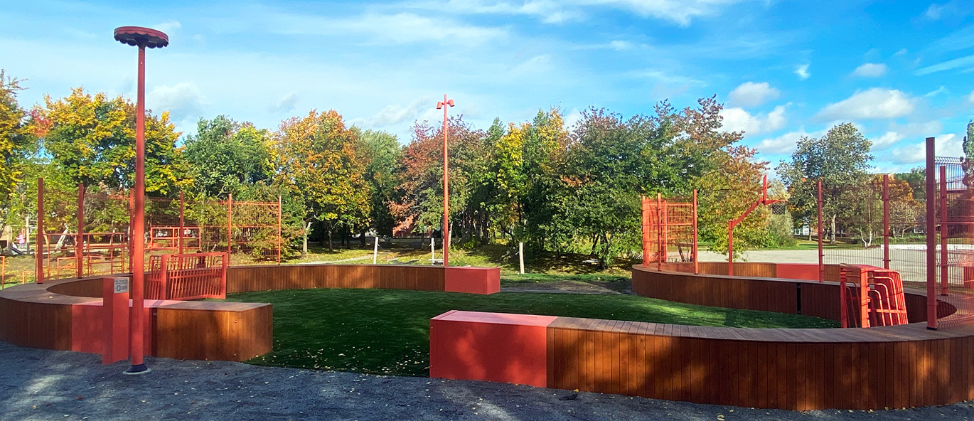 Parken i Märsta i Sverige gennemgik i 2022 en total makeover. Parken byder nu på rekreation med grillfaciliteter og siddepladser, gang- og cykelstier, ny legeplads for de mindre børn og udendørs fitness for unge og voksne. Sidst – men ikke mindst – stod den længe ventede InsideOut multiarena leveret af TRESS færdig som prikken over i'et.