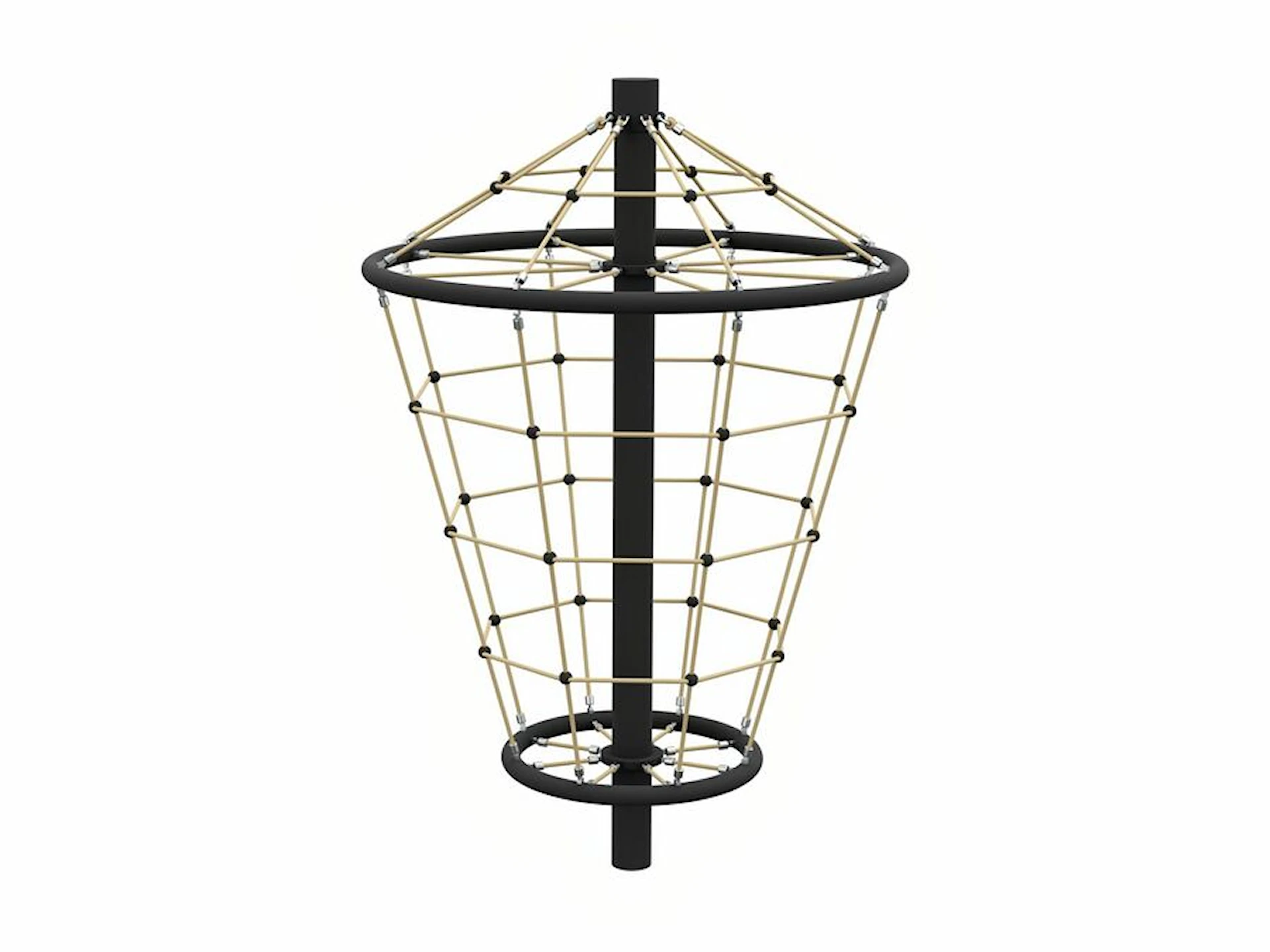 Med en diameter på 200 cm og en højde på 300 cm kan børnene teste deres styrke, koordination og balance, mens de klatrer op ad det skrånende net. Nettet kan rotere, når børnene selv sætter det i bevægelse, og det tilføjer en ekstra dimension til legen.