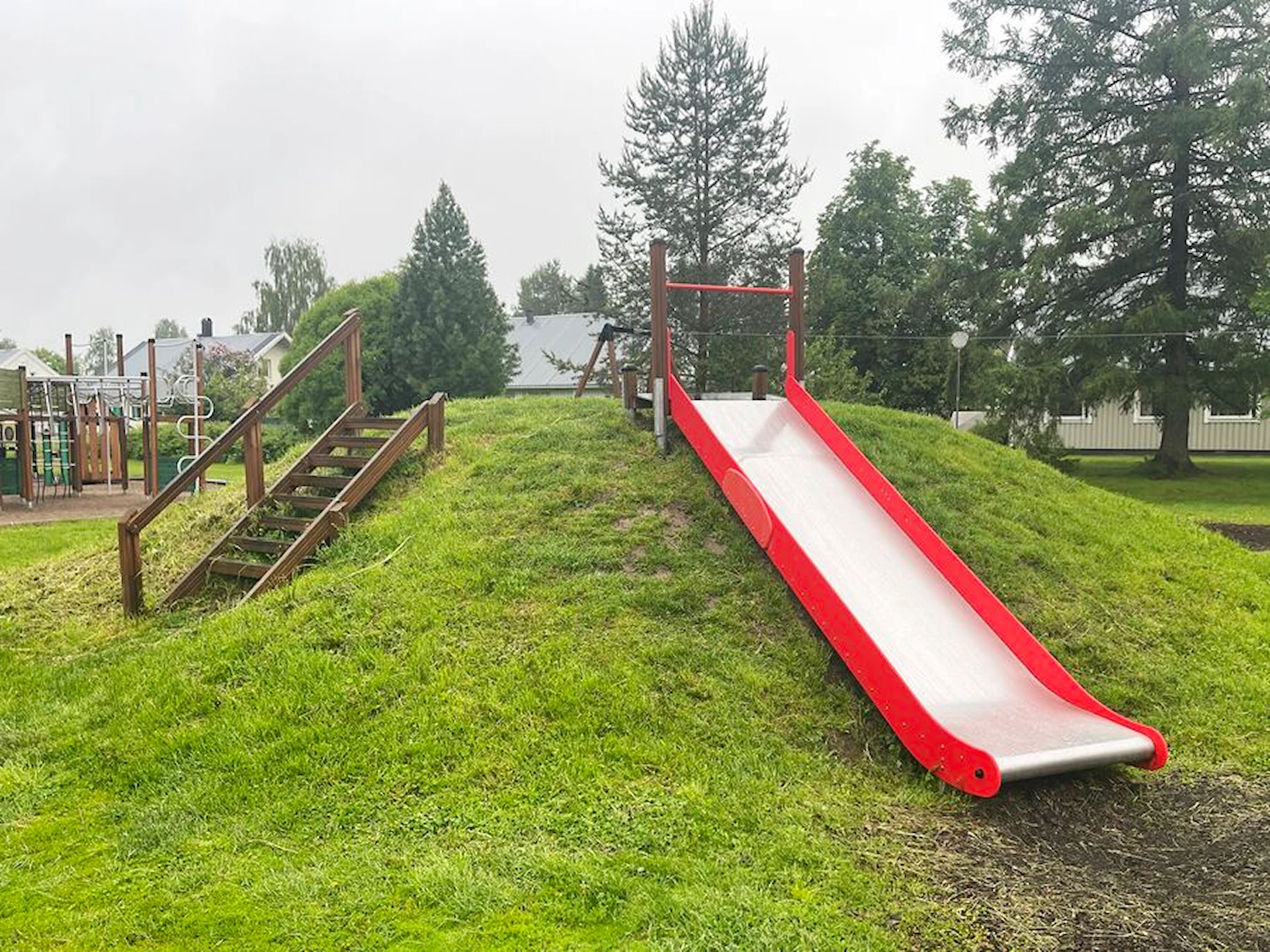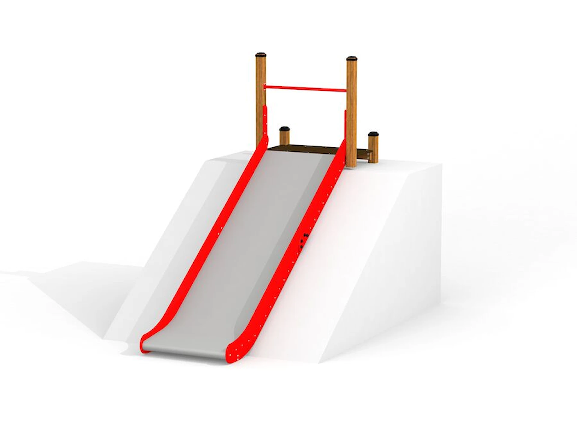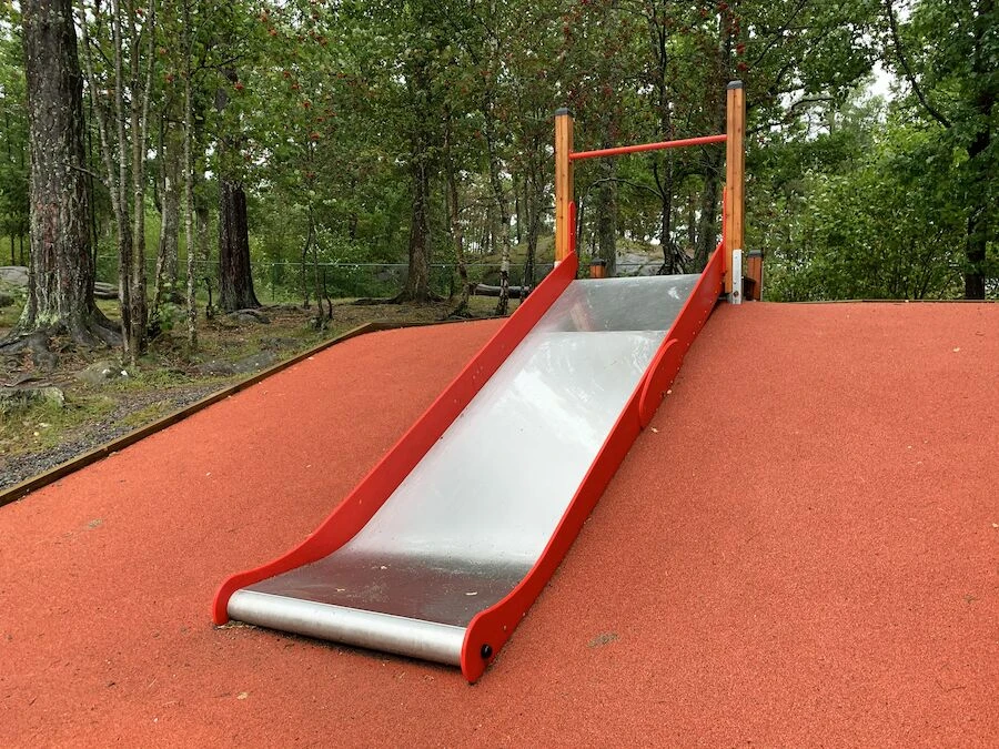 Den her rutsjebane til terræn er vedligeholdelsesfri og har en træplatform med håndtag for ekstra sikkerhed. Børnene kan holde fast i den og komme op og ned hurtigt og sikkert. Selve rutsjebanen er lavet af rustfrit stål.