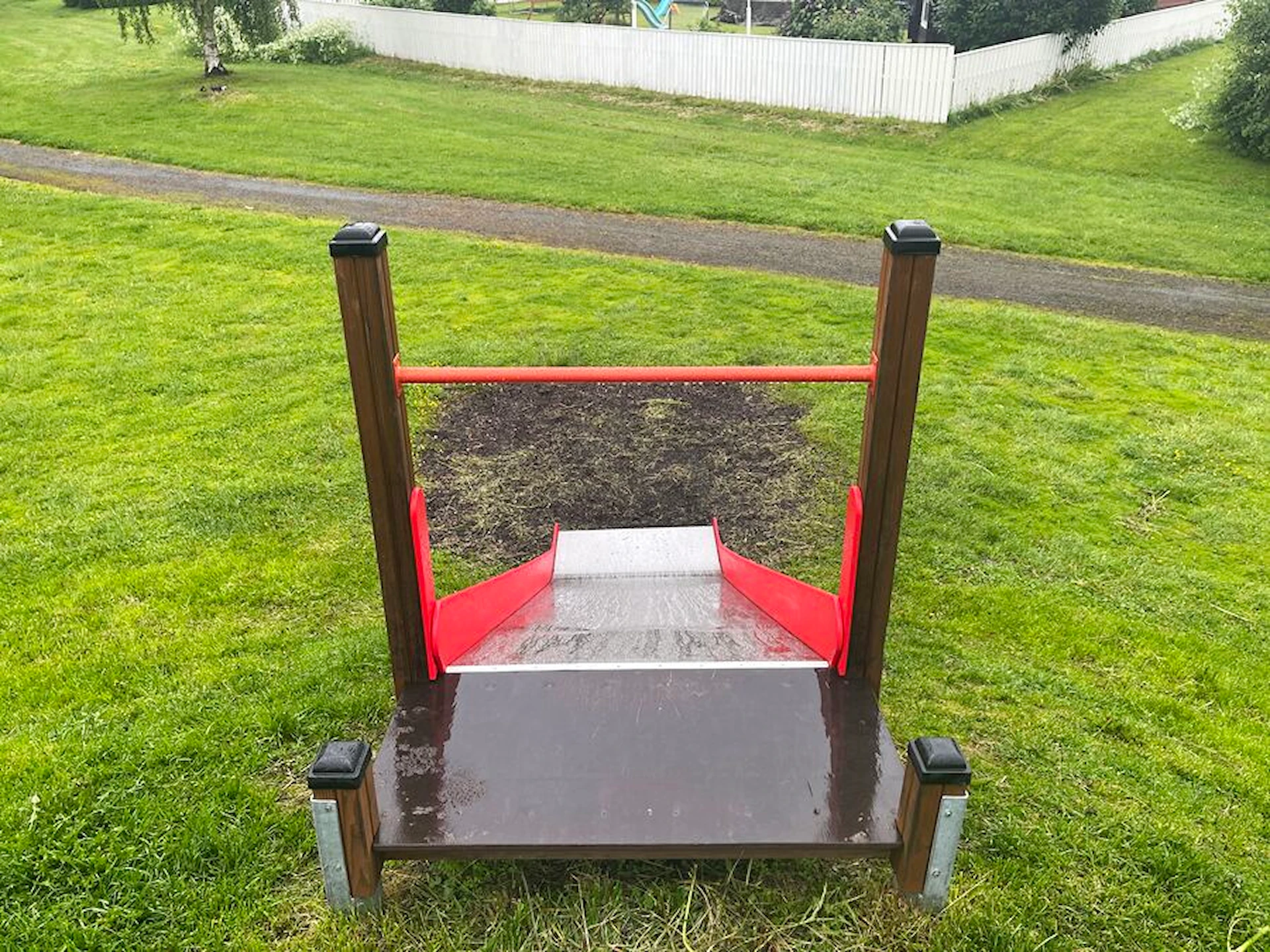 Når det kommer til sikkerhed, er det vigtigt, at rutsjebanen har et godkendt faldunderlag på mindst 100 cm. Det betyder, at græs eller jord er godkendt som faldbeskyttelsesmateriale ved udløbet. Vi anbefaler dog at bruge andet materiale, f.eks. Kunstgræs med stødabsorbering.