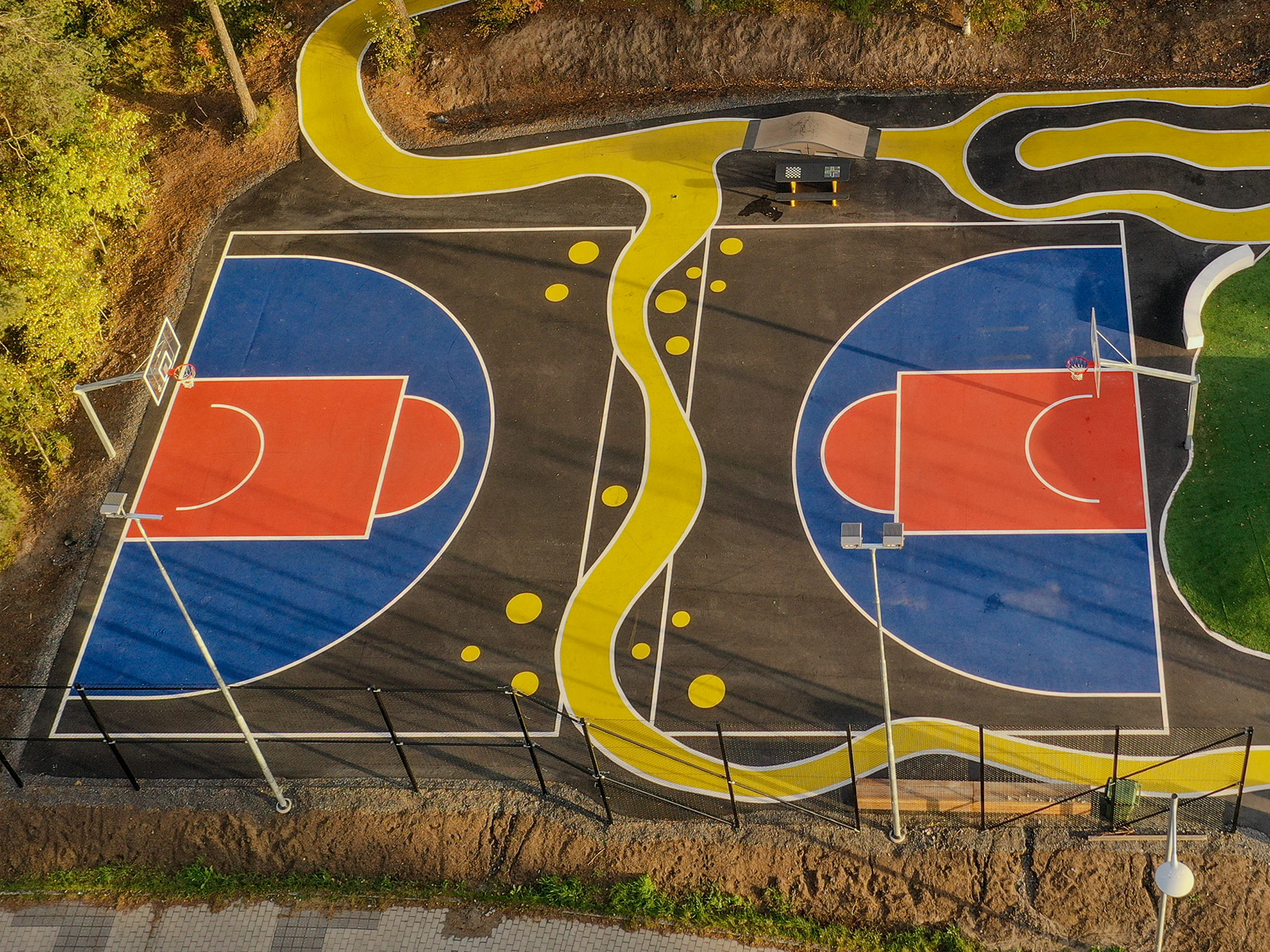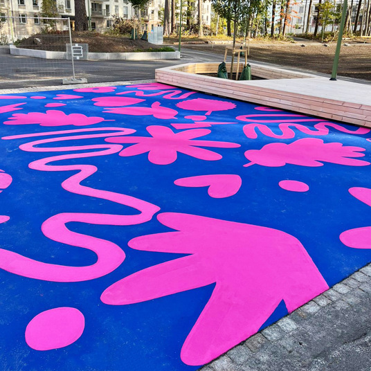 Et tomt område kan hurtigt omdannes til et aktivt og indbydende miljø – ofte med hurtig installation og kort tørretid, så området hurtigt kan tages i brug.