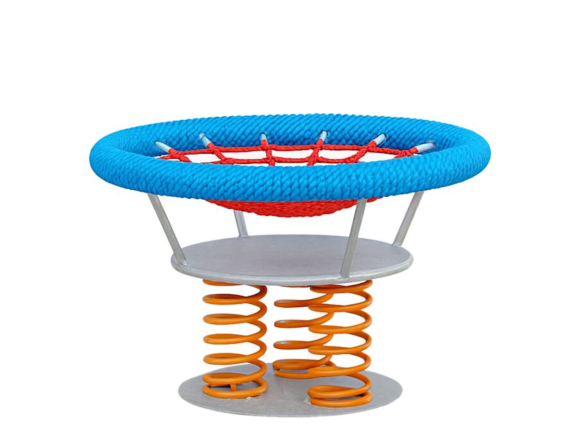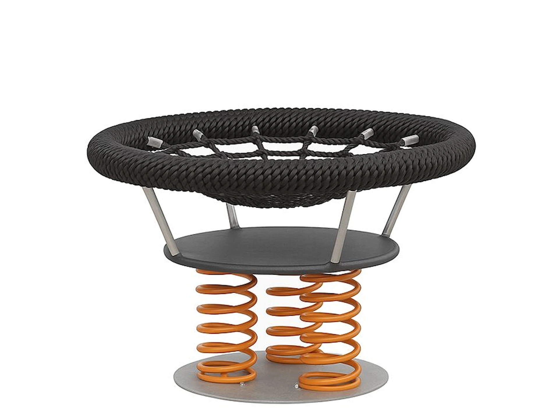 Sædet er fremstillet af slidstærkt taifuntov med indlagt ståltråd, som gør gyngeturen både sikker og behagelig. De tre kraftige fjedre giver en dynamisk og varieret bevægelse, der engagerer børn i aktiv leg.